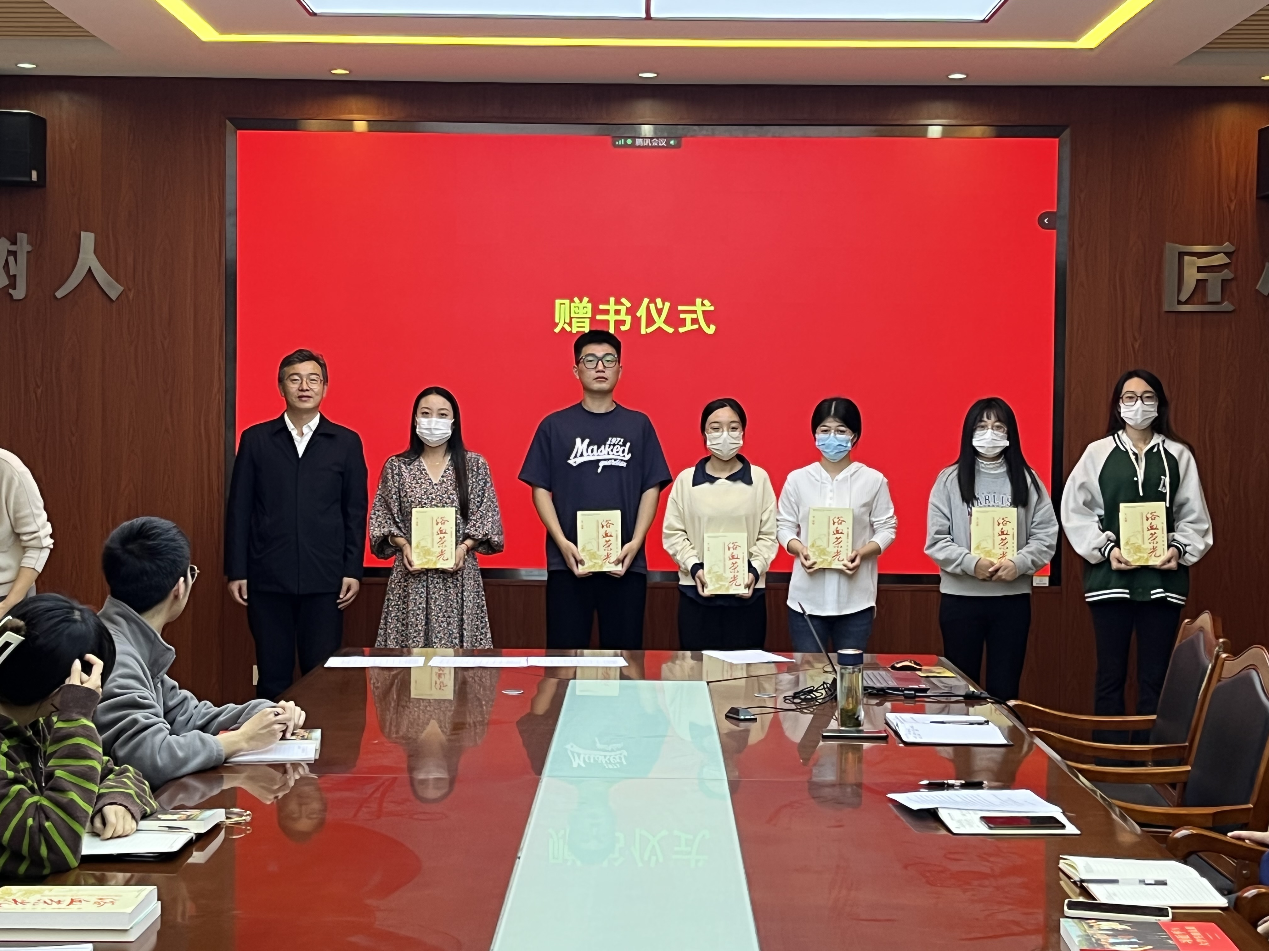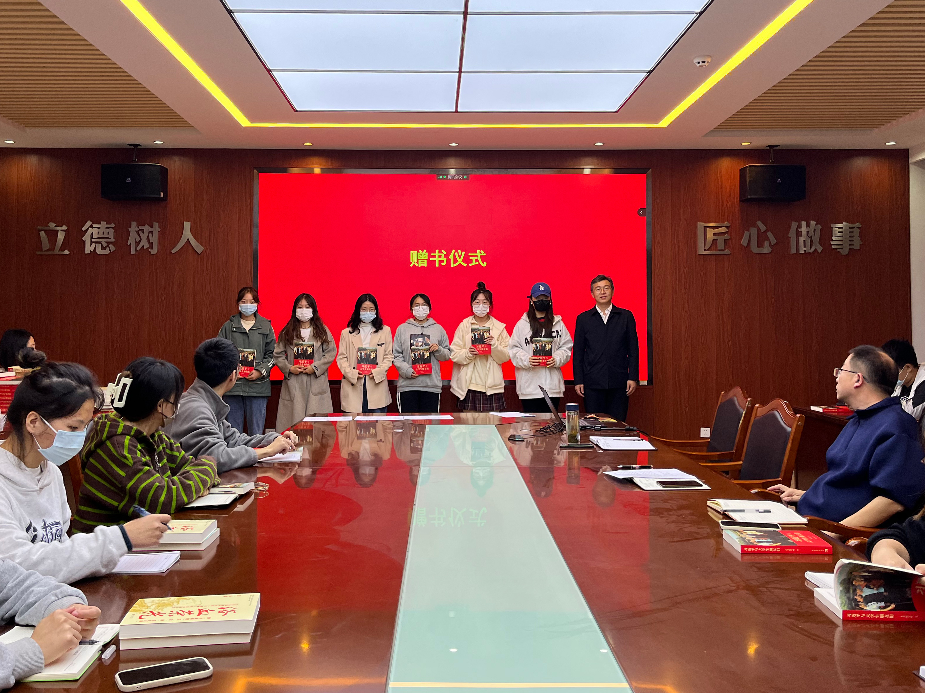 车广杰还代表学院党委向入党积极分子和党员发展对象赠送《习近平与大学生朋友们》和《浴血荣光》两本书籍,勉励同学们从书中,深刻感悟习近平总书记对青年一代的亲切关怀与殷切期望,在深刻了解中国共产党走过的百年征程中感悟党的光荣与伟大。