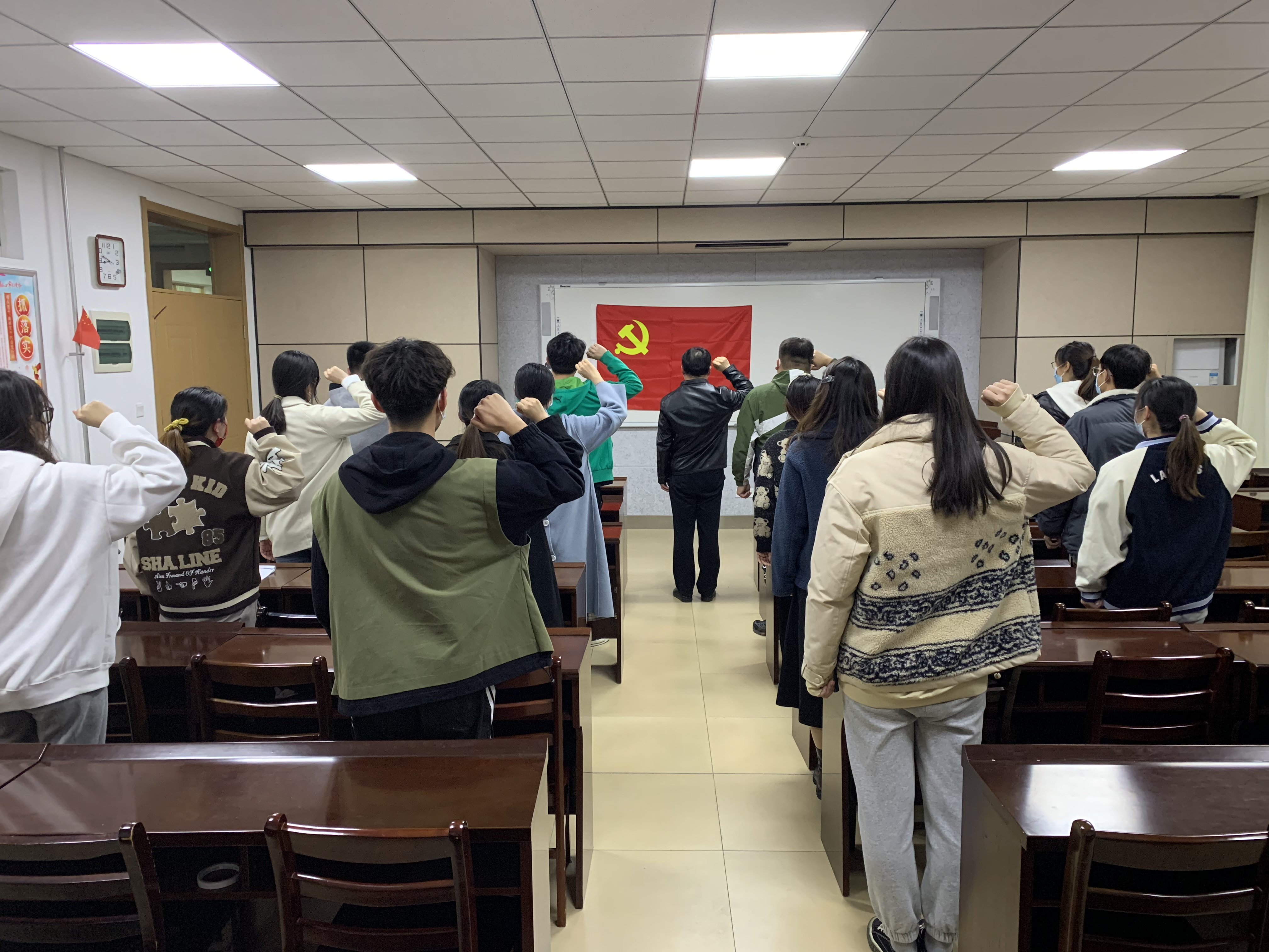 重温入党誓词阶段,全体党员在鲜红的党旗下庄严宣誓:“我志愿加入中国共产党,拥护党的纲领,遵守党的章程,履行党员义务,执行党的决定……”,铿锵有力的声音表明了全体党员传承革命精神,践行初心使命的坚定决心。