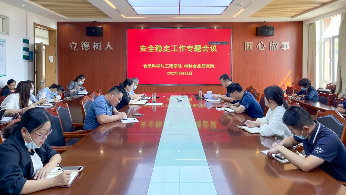 9月22日,70net永乐高、特种食品研究院在食品楼会议室召开安全稳定工作会议,全体教职工参加会议,会议由学院党委书记车广杰主持。