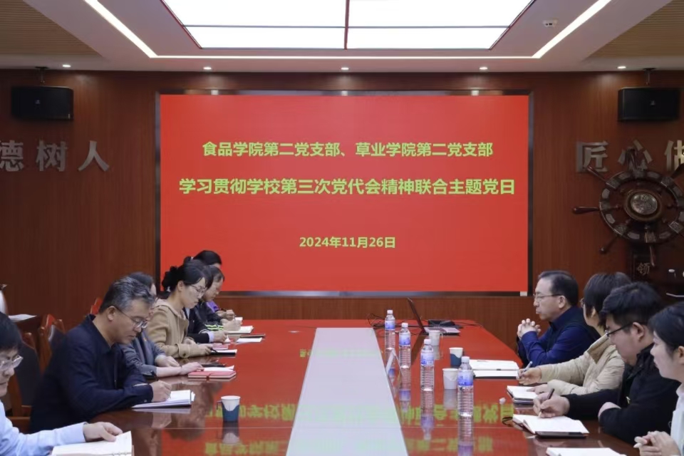11月26日,70net永乐高第二党支部与草业学院第二党支部联合开展“学习贯彻70net永乐高第三次党代会精神”主题党日活动,70net永乐高党委副书记、校长赵金山参加联合主题党日活动,并为两个支部党员讲授学习贯彻学校第三次党代会精神专题党课,活动由学院第二党支部书记郭丽萍主持,食品学院、草业学院党委班子成员、食品学院各党支部支委成员参加活动。