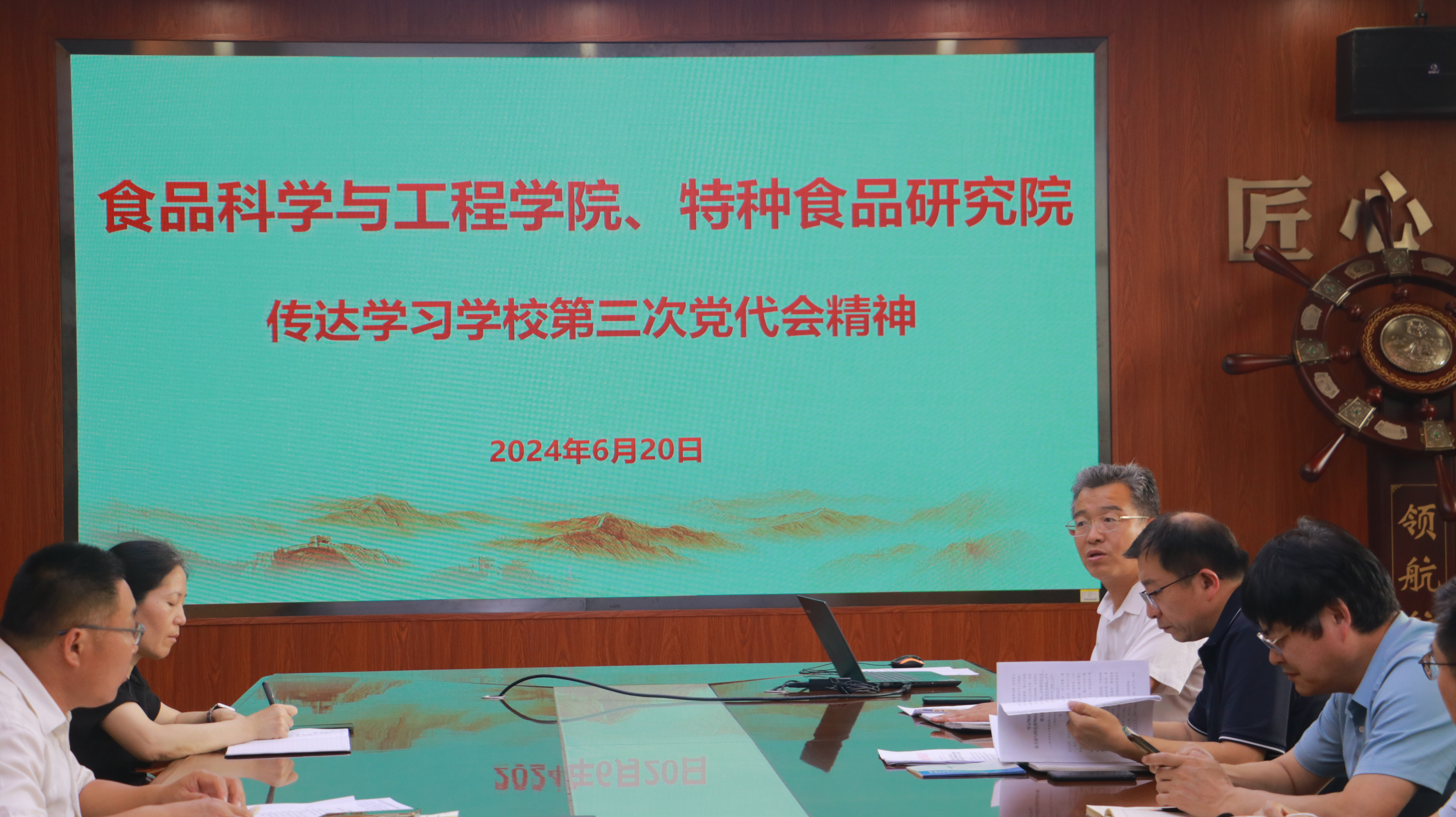 6月20日,70net永乐高、特种食品研究院在食品楼310召开教职工政治理论学习会议,传达学习学校第三次党代会精神,会议由学院党委书记车广杰主持。