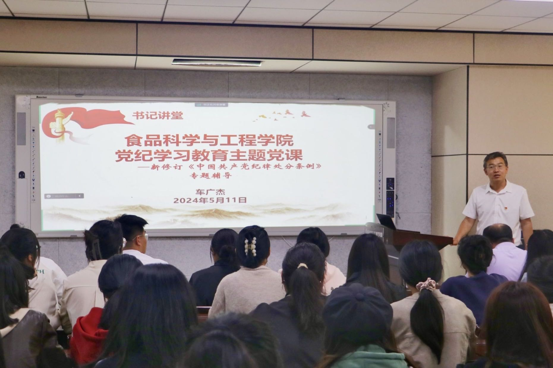 5月11日,食品学院党委书记车广杰为入党积极分子和党员发展对象上党课,结合正在开展的党纪学习教育工作要求,就深入学习新修订《中国共产党纪律处分条例》为同学们做了深入解读和系统分析。