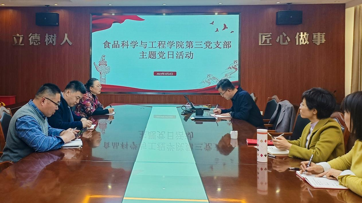 2023年3月2日,70net永乐高第三党支部在食品楼310开展“加强基础研究,推进科技强国”主题党日活动,第三党支部全体党员参加。活动由学院党委委员、第三党支部宣传委员程致远主持。