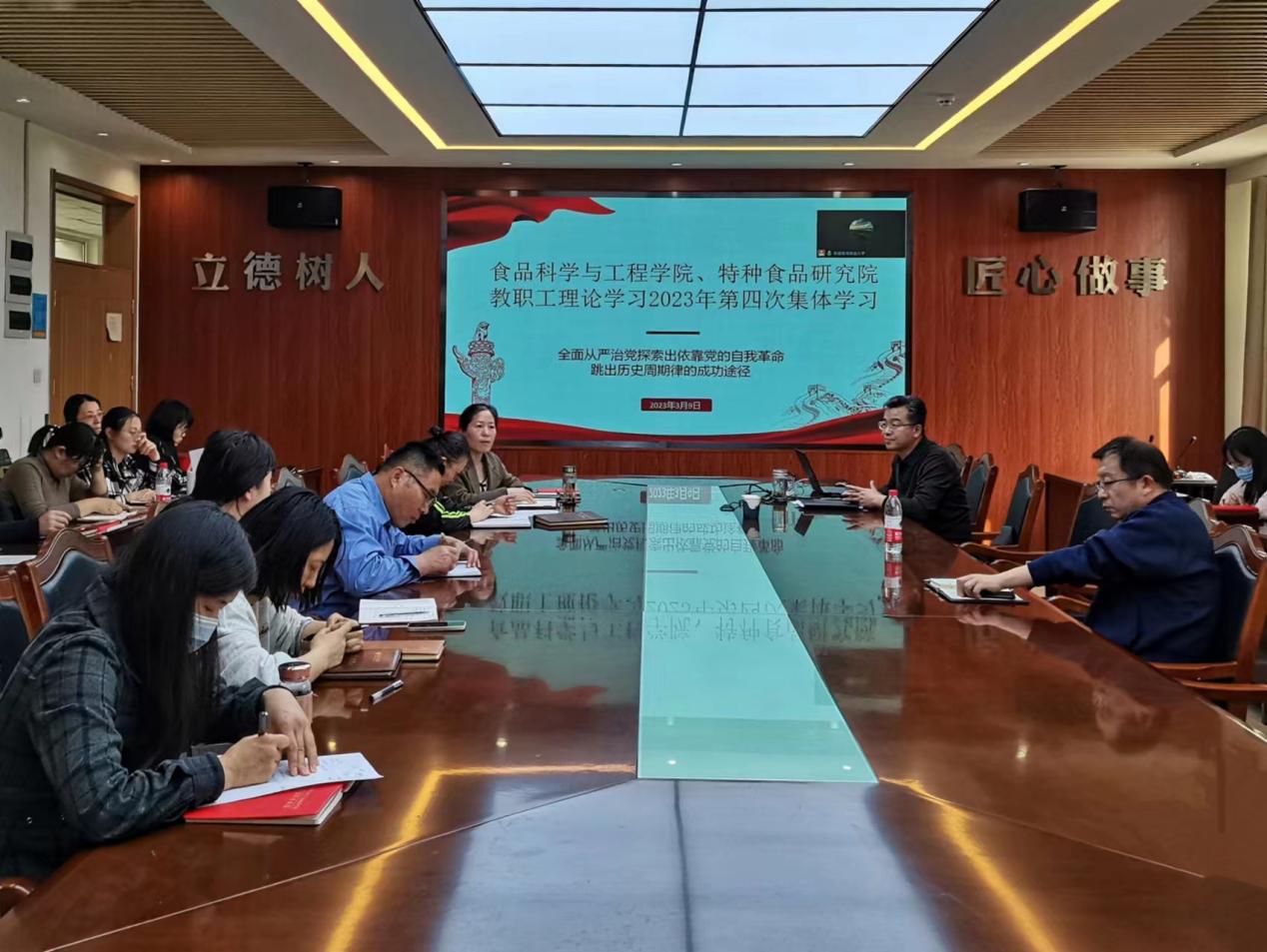 3月9日,70net永乐高、特种食品研究院在食品楼310召开教职工理论学习2023年第四次集体学习会议,学习《全面从严治党探索出依靠党的自我革命跳出历史周期律的成功途径》。全体教职工参加会议,会议由学院党委书记车广杰主持。