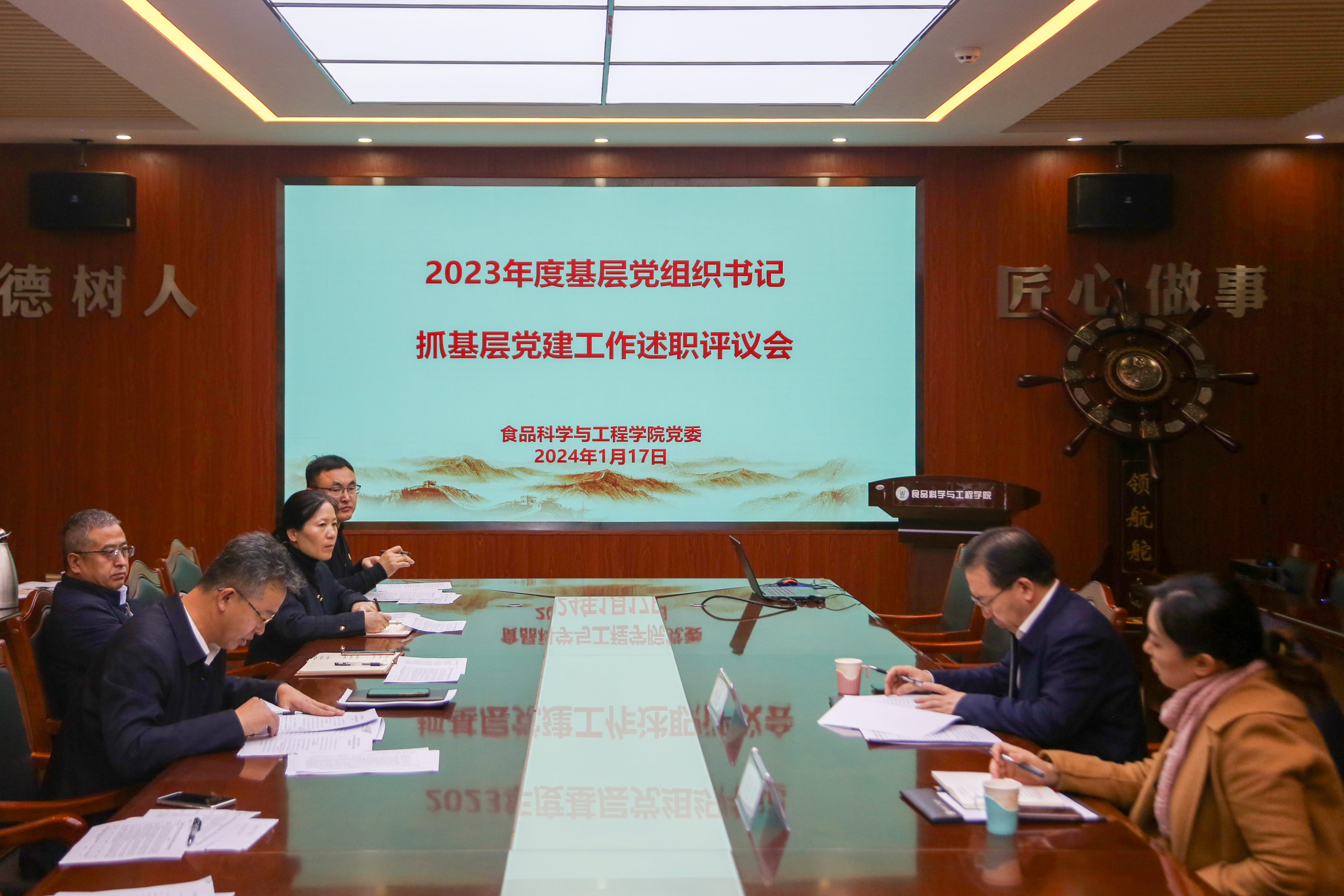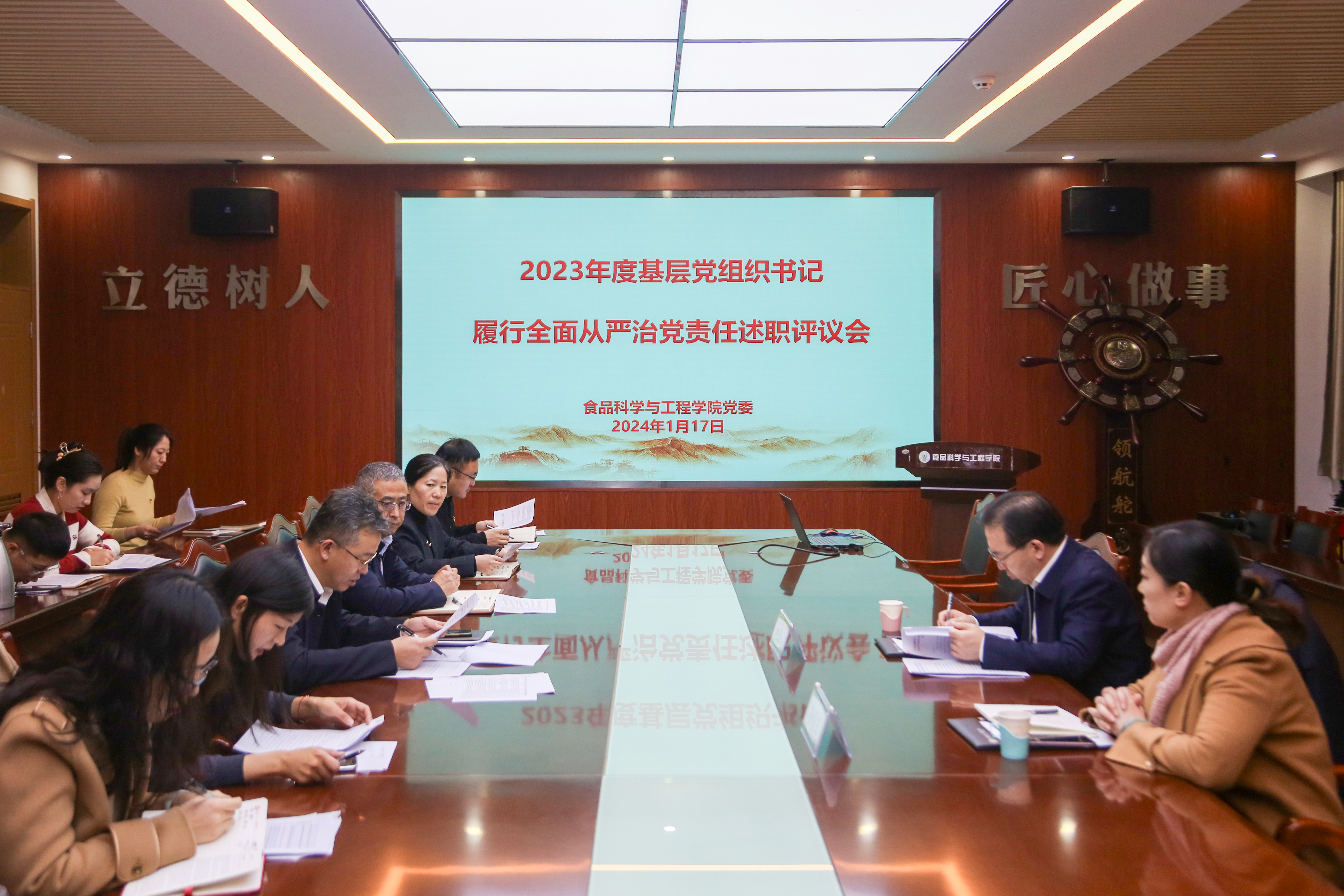 1月17日,70net永乐高召开2023年度党支部书记履行全面从严治党责任和抓基层党建工作述职评议会。校党委委员、副校长赵金山,统战部副部长孙贝贝出席会议。学院党委班子成员、各党支部书记、支委成员参加会议,会议由学院党委书记车广杰主持。