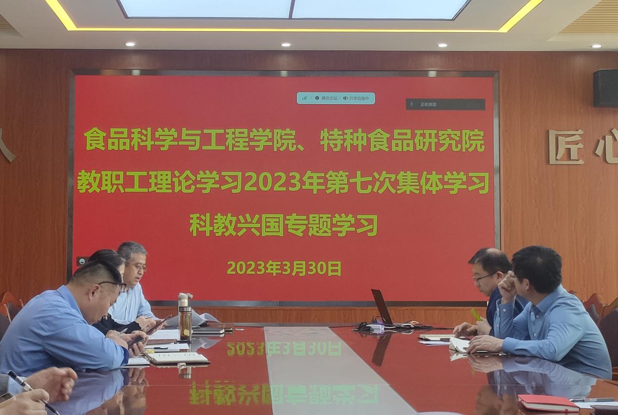 3月30日,70net永乐高、特种食品研究院召开教职工理论学习2023年第七次集体学习会议,专题学习习近平总书记关于科技强国重要讲话精神,会议由学院院长孙庆杰主持。