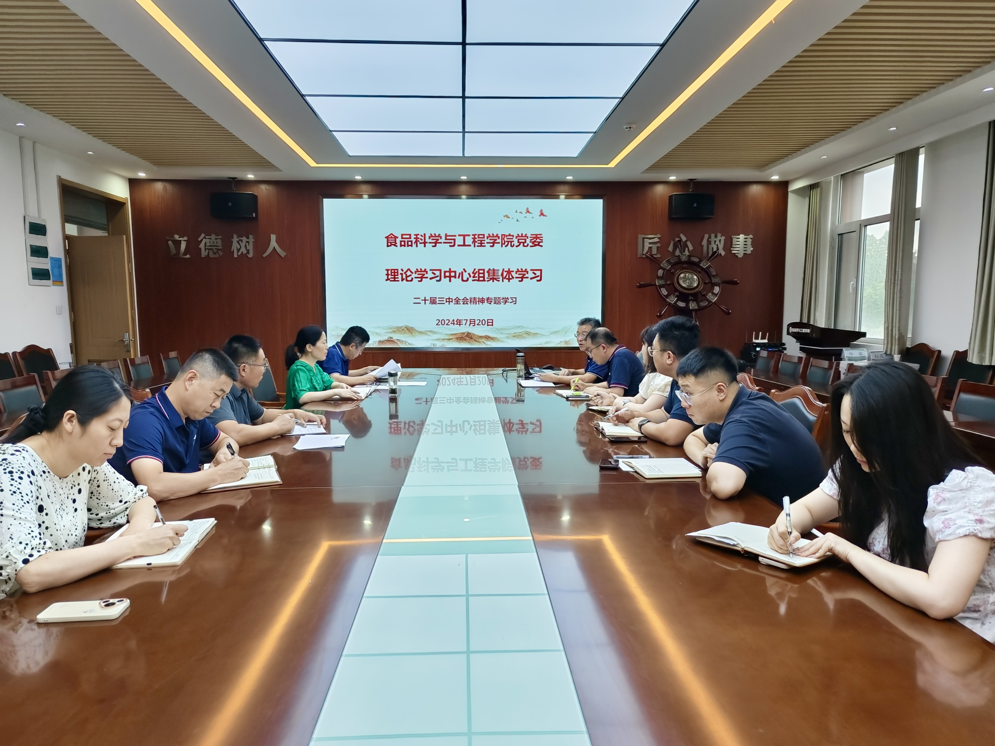 会议强调,党的二十届三中全会是在以中国式现代化全面推进强国建设、民族复兴伟业的关键时期召开的一次十分重要的会议,科学谋划了围绕中国式现代化进一步全面深化改革的总体部署,是新时代新征程的重要里程碑。深入学习贯彻党的二十届三中全会精神,是当前和今后一段时间学院各级党组织和广大师生的一项重要任务,学院党员领导干部要发挥模范带头作用,带头先学一步、深学一层,学懂弄懂做实党的二十届三中全会精神,切实把思想和行动统一到全会精神上来,紧紧围绕推进中国式现代化进一步全面深化改革,守正创新、务实担当,不断谱写新时代改革开放新篇章。同时,学院要结合学校第三次党代会提出的“1186”发展战略和“三进位、六突破”目标任务,进一步加强党建引领,强化学科和专业建设,开展有组织化科研,提高人才培养质量,在国家级科研平台、国家级产业学院建设等方面主动请缨、勇挑重担、破解难题,为实现学校的高质量发展贡献食品力量。