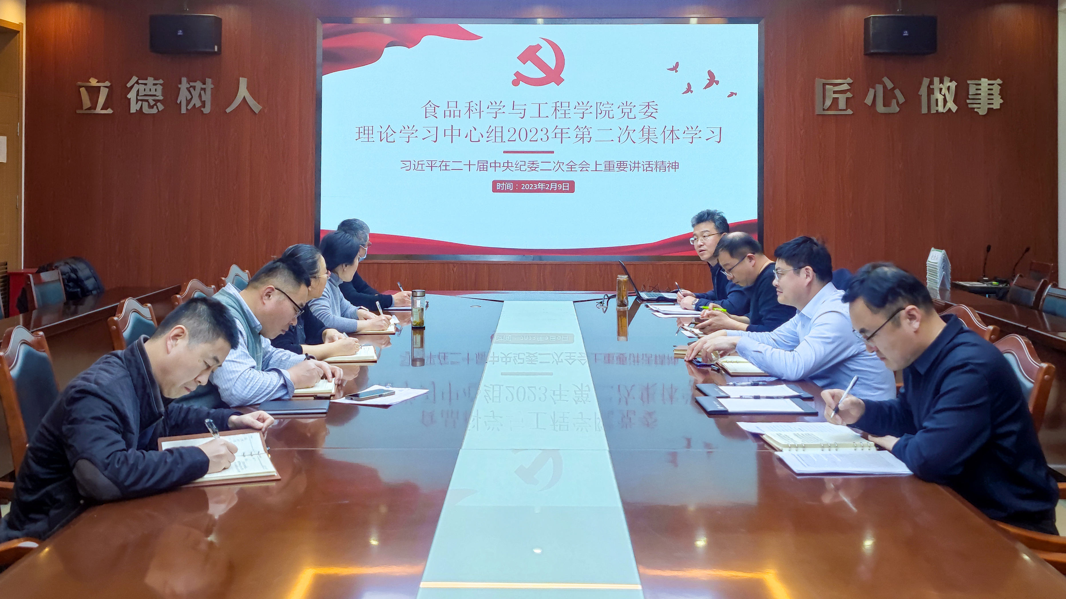 2月9日,70net永乐高党委理论学习中心组在食品楼310开展2023年第二次集体学习。党委书记车广杰主持会议,中心组全体成员参加。