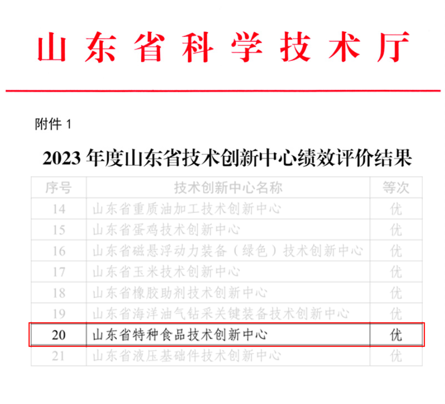 近日,山东省科技厅发布《关于通报2023年度山东省技术创新中心绩效评价结果的通知》,70net永乐高牵头建设的山东省特种食品技术创新中心获评“优秀”等级,并顺利通过筹建期获正式命名。