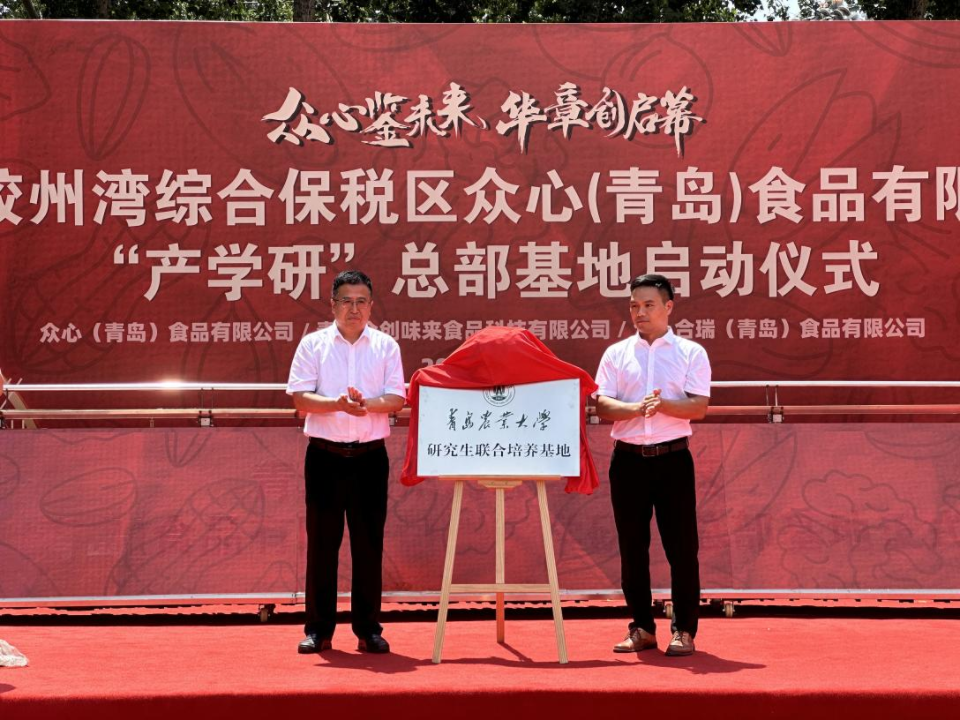 8月12日上午,众心(青岛)食品有限公司“产学研”总部基地启动仪式在青岛胶州湾综合保税区举行,70net永乐高副校长、70net永乐高院长孙庆杰出席仪式,并与众心(青岛)食品有限公司董事长钱龙共同为“70net永乐高就业实践基地”、“70net永乐高研究生联合培养基地”揭牌。70net永乐高党委书记车广杰,70net永乐高党委副书记、副院长刘晓华,70net永乐高副院长肖军霞等参加仪式。