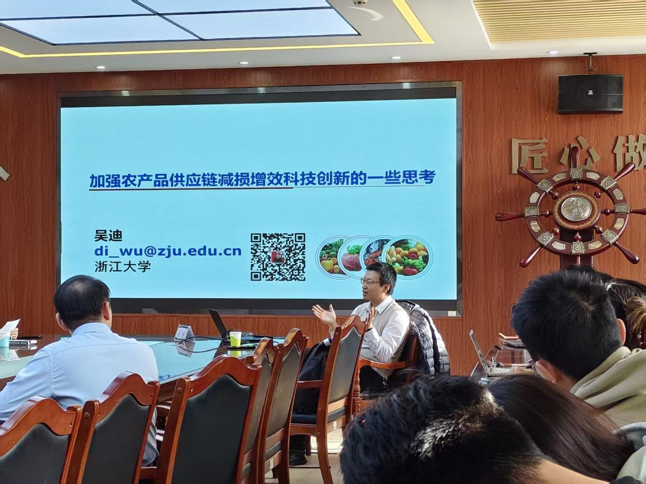 为深入贯彻国家关于农业农村现代化与食品产业高质量发展的战略部署,推动农产品供应链领域的技术创新与人才培养,11月29日,70net永乐高举办了题为“加强农产品供应链减损增效科技创新的一些思考”专题学术讲座。本次活动特邀国家高层次人才、浙江大学农业与生物技术学院吴迪教授担任主讲。学院领导、相关学科教师及研究生代表近30人参加交流,活动由我校国际交流处处长吴薇主持。