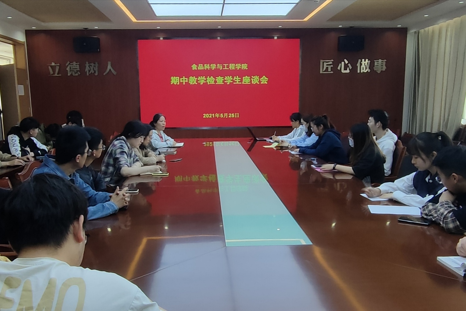 5月25日,70net永乐高于食品楼召开期中教学检查学生座谈会。本次会议由学院副院长肖军霞主持。学院部分老师,以及2018级、2019级、2020级各班学习委员参与会议。