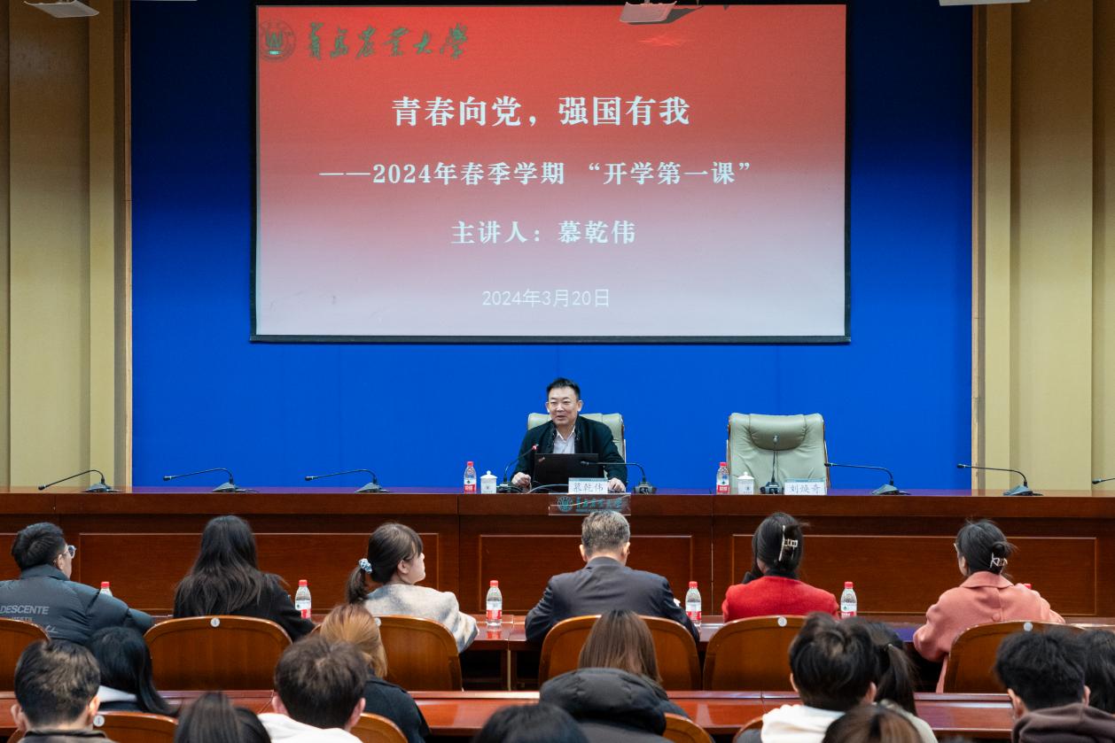 3月20日,70net永乐高党委委员、宣传部部长、统战部部长慕乾伟以“青春向党,强国有我”为题,在学术会馆第一报告厅为巴瑟斯未来农业科技学院、70net永乐高师生讲授开学第一课。巴瑟斯未来农业科技学院党委书记刘焕奇、70net永乐高党委书记车广杰、两院学工办老师、学生代表参加活动,活动由刘焕奇主持。
