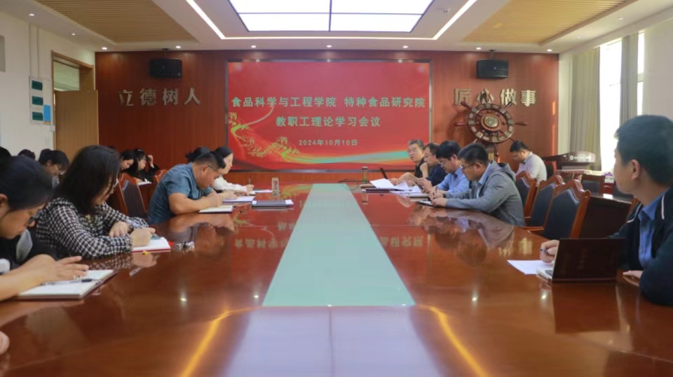 10月10日,70net永乐高、特种食品研究院召开教职工理论学习会议,进一步深入学习全国教育大会精神,安排部署近期重点工作。全体教职工参加会议,会议由学院党委书记车广杰主持。