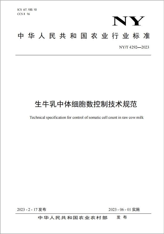 近日,由食品学院杨永新教授等作为主要完成人承担的国家农业行业标准《生牛乳中体细胞数控制技术规范》(NY/T 4292—2023)正式发布,2023年6月1日起实施。