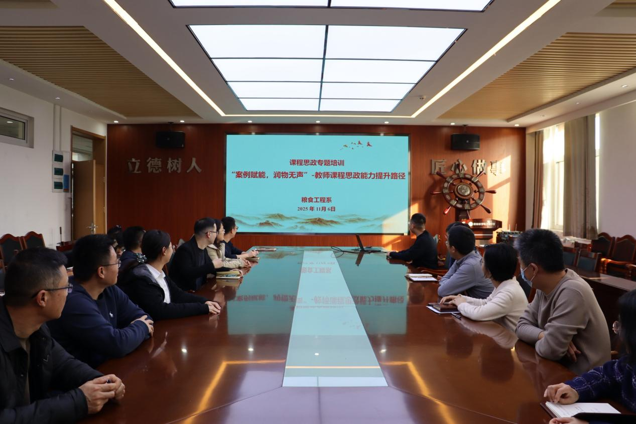 培训中,粮食工程系主任董绪燕带领全体专任教师深入学习国家粮食安全战略、乡村振兴战略等重大战略部署,深刻阐释粮食工程专业在国家发展全局中的战略地位与时代使命,强调课程思政并非专业教育的“附加项”,而是其内在要求。培训中,董绪燕系统梳理了专业课程中蕴含的思政元素,深入挖掘粮食工程(涵盖粮食储藏、食品加工、粮油机械、品质检测等方向)课程中的思政“矿藏”。