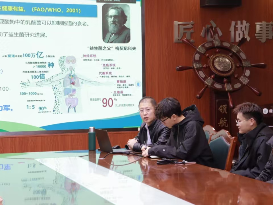 李兆杰对益生菌、益生元、后生元及合生元的概念、作用机制及其在食品工业中的应用展开详尽阐述。他提到,这些生物活性物质对于维护和促进人体健康具有重要作用,尤其在调节肠道微生态、增强免疫力等方面显示出巨大潜力。他特别指出,随着科学研究的深入,益生菌等生物活性物质的应用前景将更加广阔,对食品工业的发展具有重要意义。深入浅出的讲解让同学们对这些前沿科学概念有了基本了解,激发了同学们对食品科学领域的兴趣和探索欲望。