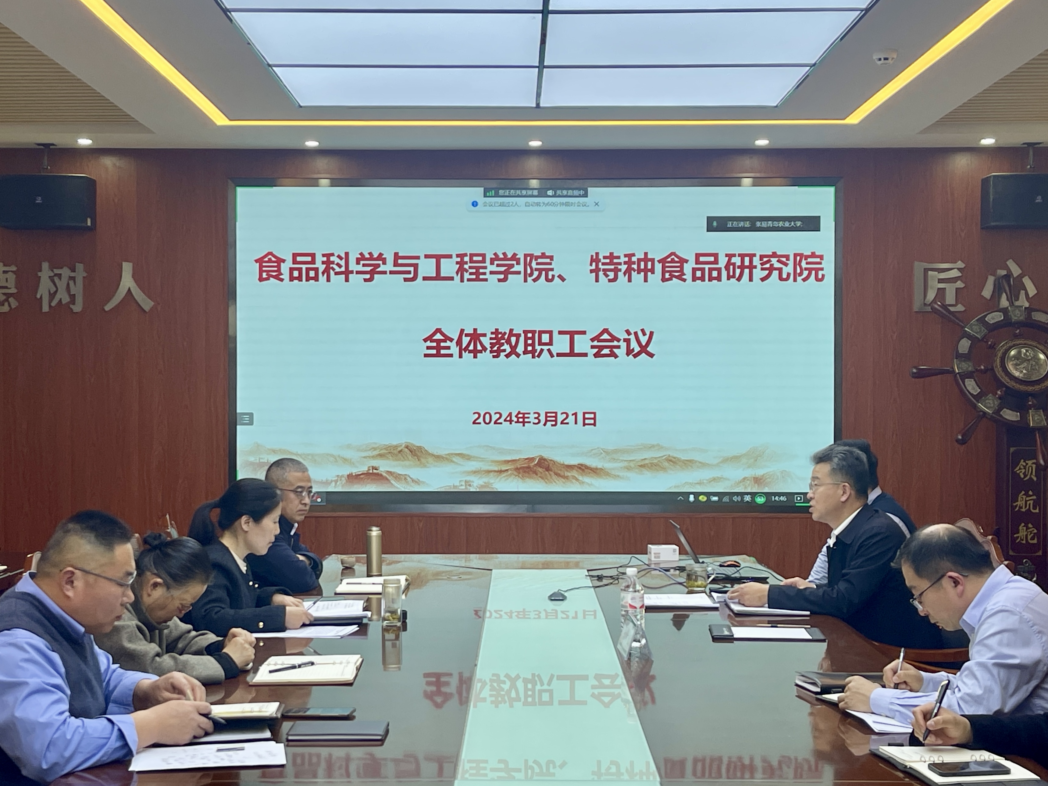 3月21日,70net永乐高、特种食品研究院召开教职工理论学习会议,全体教职工参加会议,会议由学院党委书记车广杰主持。