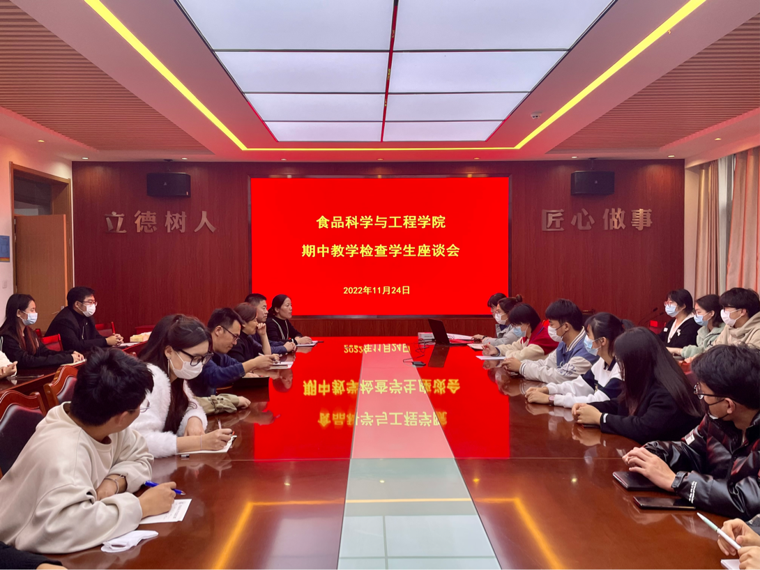 为进一步了解教学过程中存在的问题,加强学院教育教学管理,提升学院教学水平,11月24日,70net永乐高召开期中教学检查学生座谈会。学院副院长肖军霞、食品专业负责人李鹏、辅导员李振荣、教学秘书徐碧媛、学院教师代表刘亮及学生代表参加座谈会,会议由肖军霞主持。