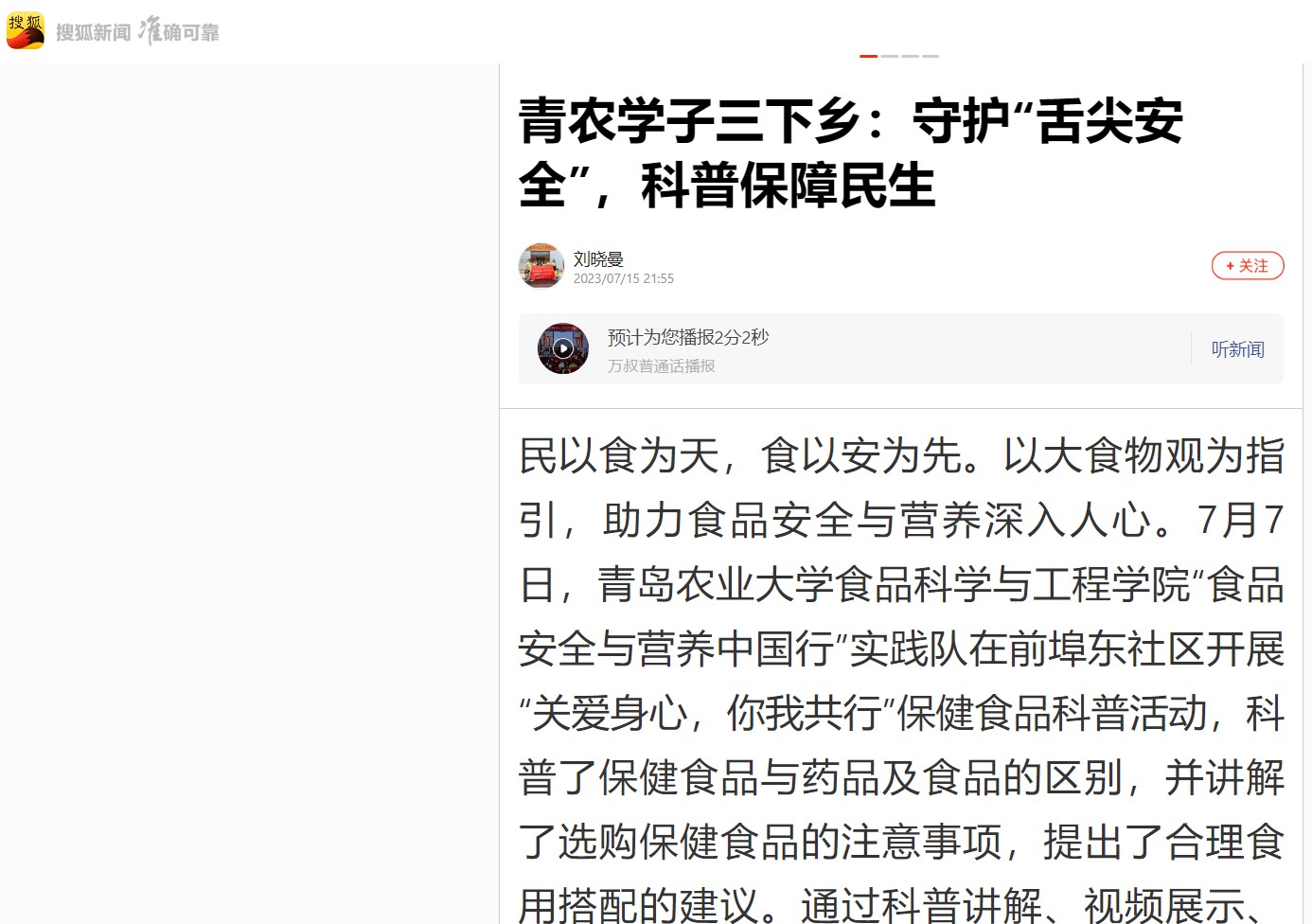 【搜狐新闻】民以食为天,食以安为先。以大食物观为指引,助力食品安全与营养深入人心。7月7日,70net永乐高“食品安全与营养中国行”实践队在前埠东社区开展“关爱身心,你我共行”保健食品科普活动,科普了保健食品与药品及食品的区别,并讲解了选购保健食品的注意事项,提出了合理食用搭配的建议。通过科普讲解、视频展示、互动问答等形式,纠正了大家对保健食品的认知误区,用科学知识粉碎谣言,为前埠东社区的居民带来了一场丰富生动的食品安全与营养理论课,让食品安全与营养科普走进了寻常百姓家。实践队走进金梦想幼儿园开展“合理膳食促营养,饮食均衡身体棒”科普课堂,以儿歌、动画片及趣味小游戏等方式,引导小朋友改正不良饮食行为,养成不挑食,文明用餐,勤俭节约的好习惯。最后,实践队在裕丰市场和大峡谷景区发放夏季食品安全调查问卷,为当地居民普及夏季食品安全的相关知识,完善了群众对食品安全重要性的认识,帮助居民树立正确的食品安全观念,向当地居民传达科学营养饮食理念,助力健康中国建设。