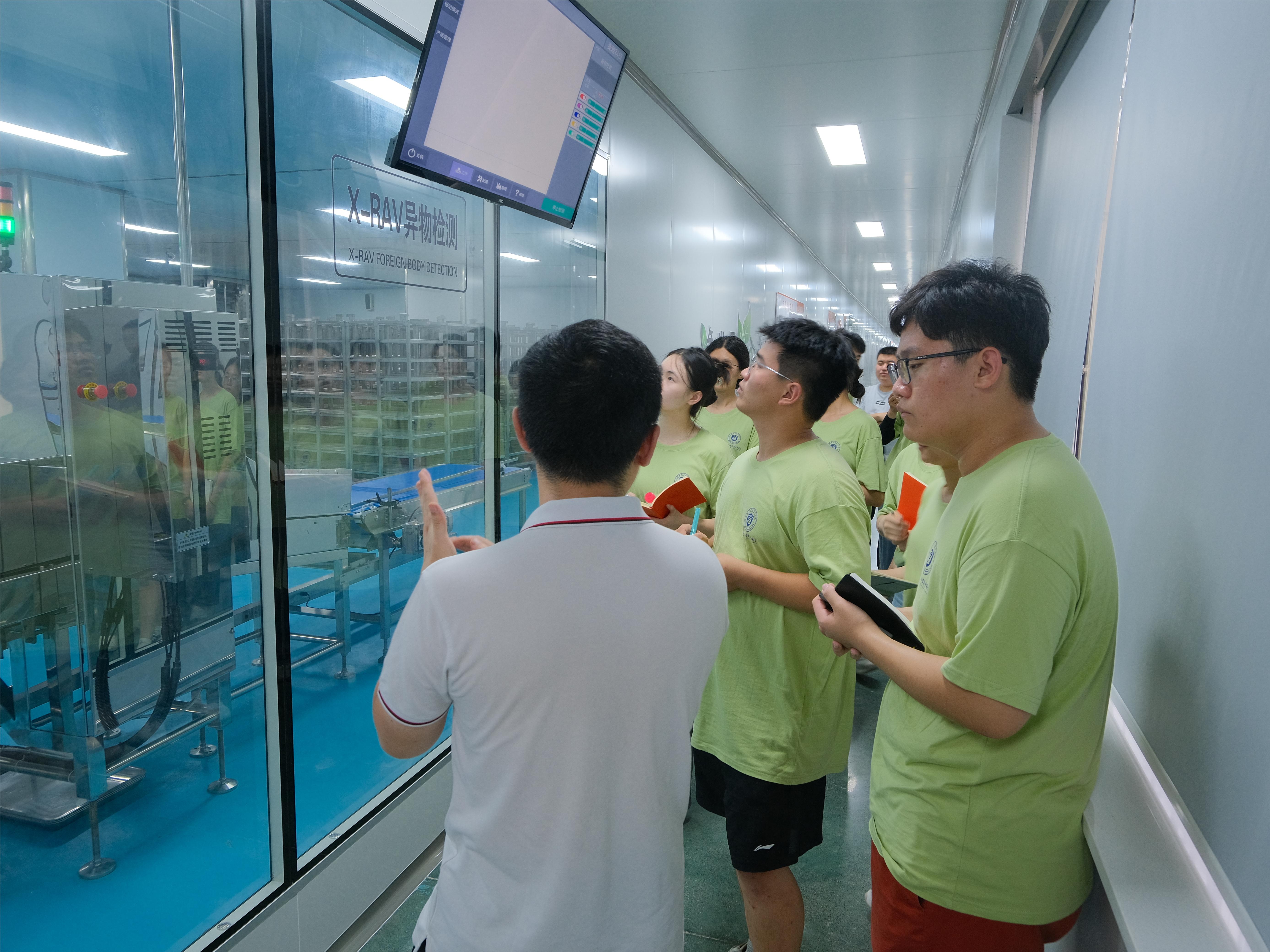 团队第三站来到了山东诺好佳食品有限公司。生产七车间吴长青主任的带领实践团队参观了起酥面包的工艺流程,队员们切身感受了在互联网、物联网和大数据等先进技术下车间生产的高度可视化和信息化。身穿印有“德 智 爱”企业文化衫的员工从车间外不断经过,走廊的文化墙上也镶有企业核心价值观。吴主任向大家介绍了公司的企业使命、企业愿景和经营理念。从他对公司践行绿色发展理念作的经验分享中实践队员了解到,公司严格把控原材料的检验检测,对车间工作人员实行“目视化”管理模式,打造全自动化生产线以规避风险。另外公司将从新旧动能的转换入手,未来将不断顺应行业发展趋势在多方面实现效率提升以达到产业整体转型升级。