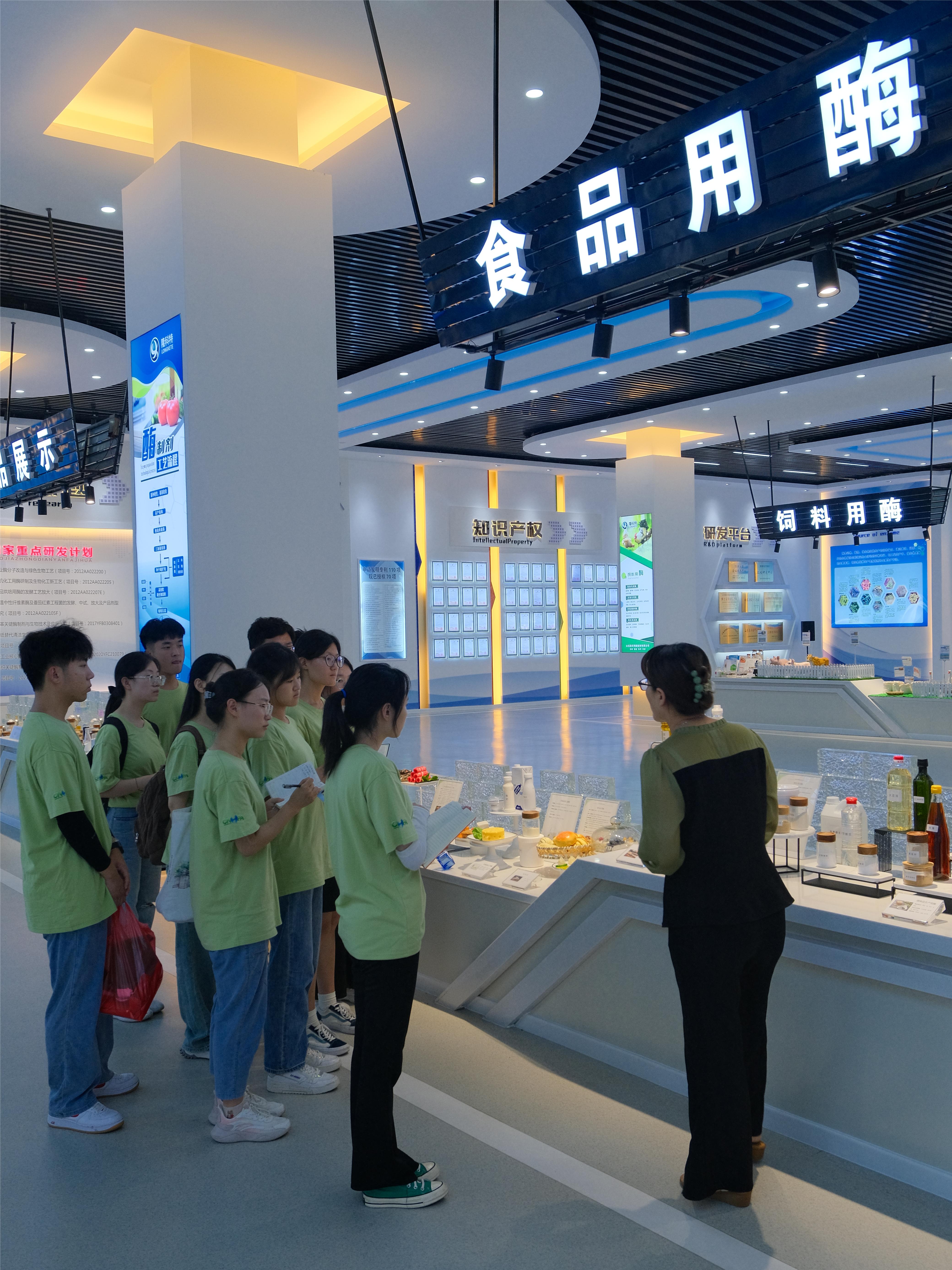 团队第二站来到了山东隆科特酶制剂有限公司。在公司技术人员的带领参观和讲解下,实践队员了解了酶制剂在衣食住行等生活中各方面的应用。目前,公司设有全国多个研发中心,随着菌种的更新换代不断攻克技术难题实现产业化,加强与科研机构、高等院校的合作,优化人才结构为产业转型升级提供强大动力。