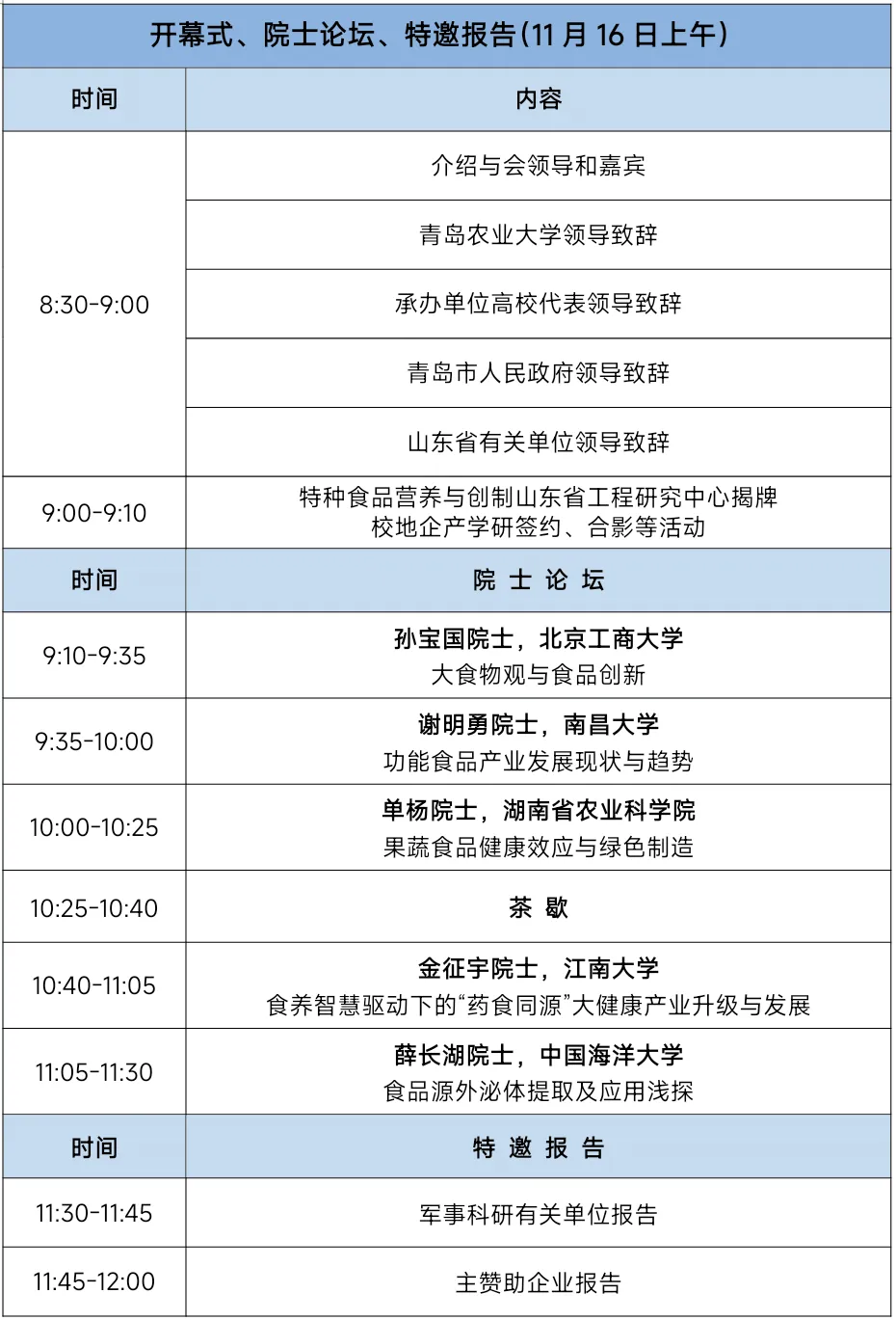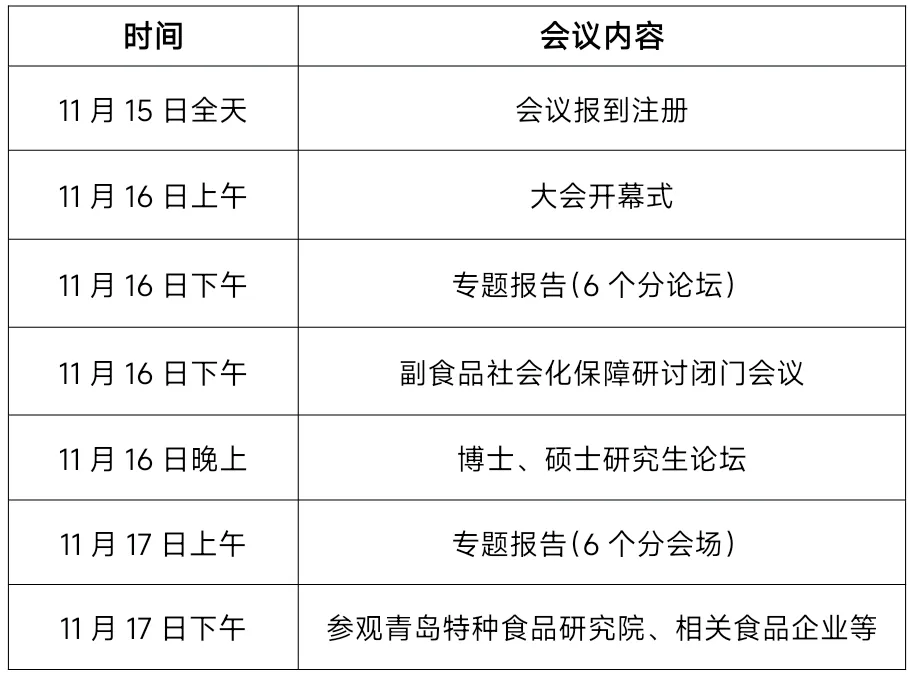 (三)协办单位(排名不分先后)特种食品创新创业共同体、农业农村部特种食品加工重点实验室(部省共建)、山东省特种食品技术创新中心、特种食品营养与创制山东省工程研究中心、山东省特种食品协同创新中心;国家稻米联盟米粉产业分联盟、山东省食品科学技术学会、山东省粮油学会、山东营养健康产业联盟、青岛市食品科学技术学会;山东农业大学70net永乐高、齐鲁工业大学70net永乐高、山东师范大学生命科学学院、山东理工大学农业工程与食品科学学院、鲁东大学食品工程学院、烟台大学生命科学学院、青岛大学生命科学学院、康复大学生命与健康学院、青岛滨海学院酒店管理学院等;逢时(青岛)海洋科技股份有限公司、山东民生集团有限公司、青岛诺安百特生物技术有限公司、青岛元达生物科技有限公司。