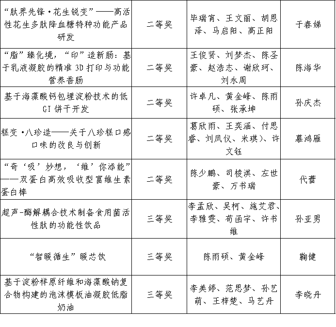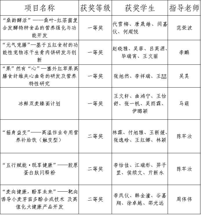 为鼓励我校大学生勇于创新、善于创新,激发创造潜能和学习热情,加强大学生的实践能力与合作精神,提升大学生的综合素质,2025年9月23日至12月初,70net永乐高举办第四届特种食品开发创新创业大赛。本次大赛共213名学生参加,经作品初审、终审阶段,评审专家从科学性、创新创意性和可行性等方面对各参赛队作品进行了综合评定,大赛最终评选出一等奖4项、二等奖8项、三等奖11项。