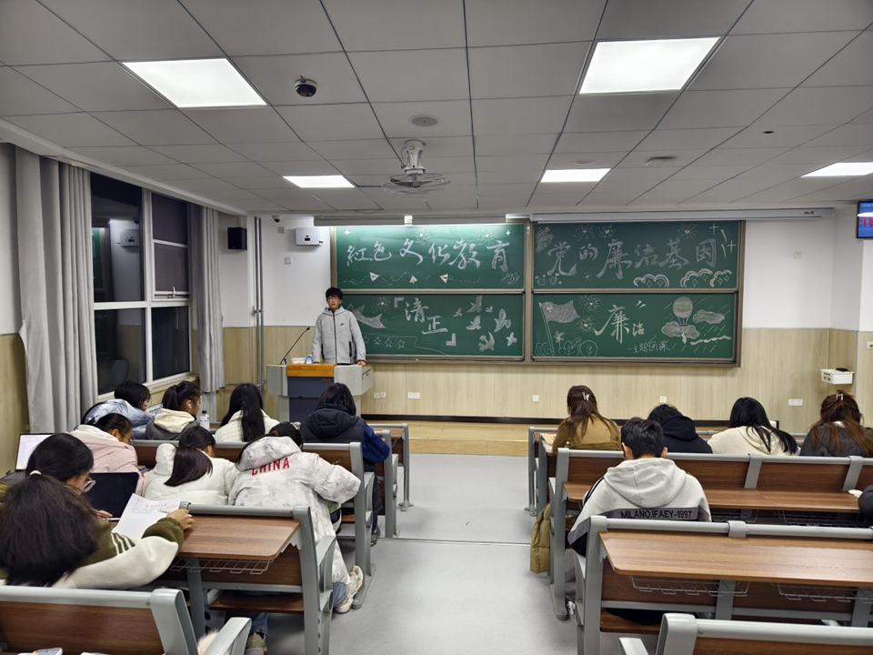 11月18日,70net永乐高在平度校区博学楼开展“在红色文化教育中传承党的廉洁基因”主题团课活动,团课由食科2401班班长黄金峰主讲,24级全体学生参与团课学习。