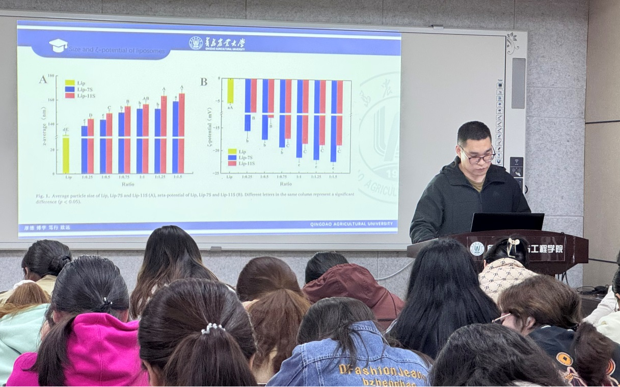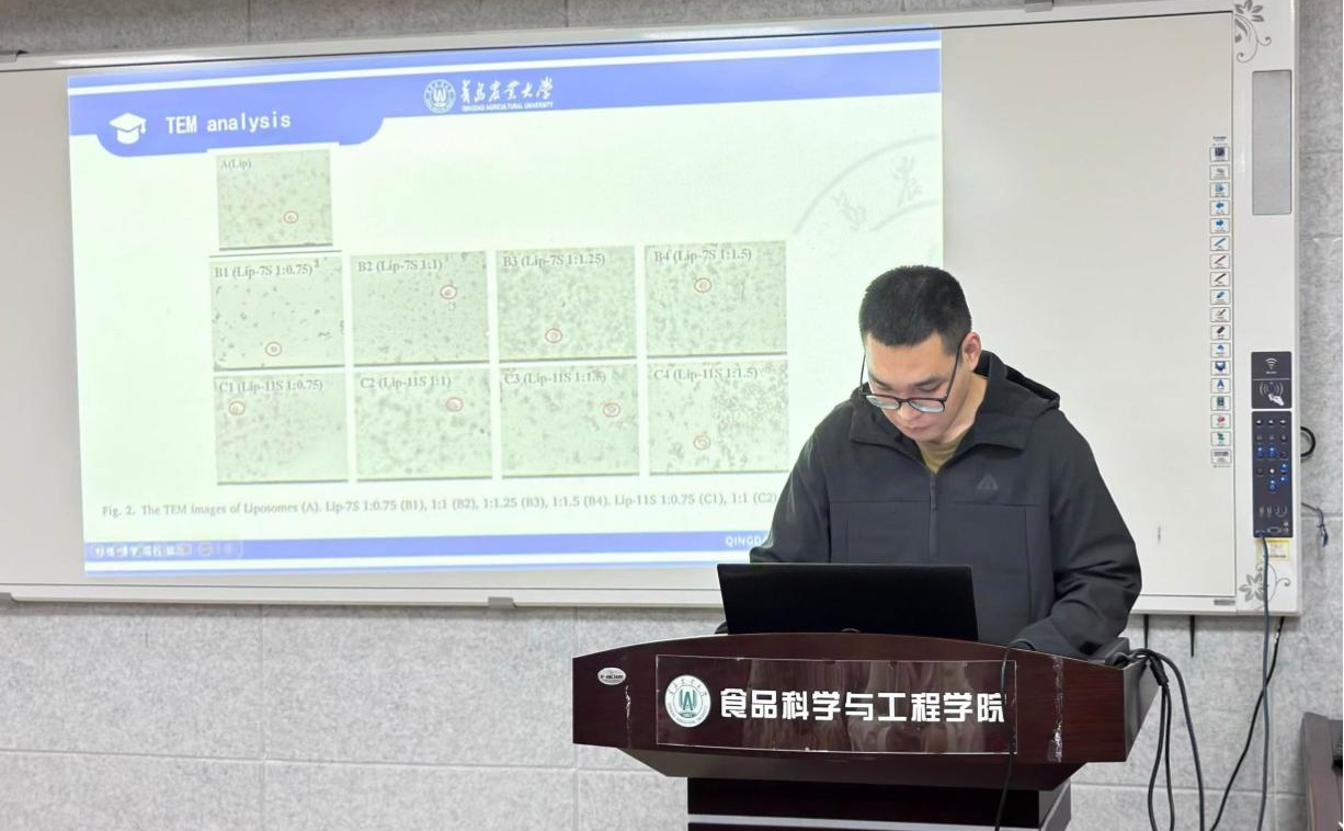赵士龙同学的分享和讨论,增进了在场师生对蛋白质修饰脂质体研究前沿的认识,为未来进一步探索脂质体在食品和药物传递中的创新应用提供了启发和宝贵的借鉴。