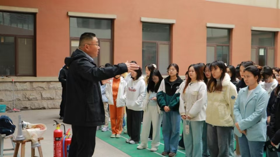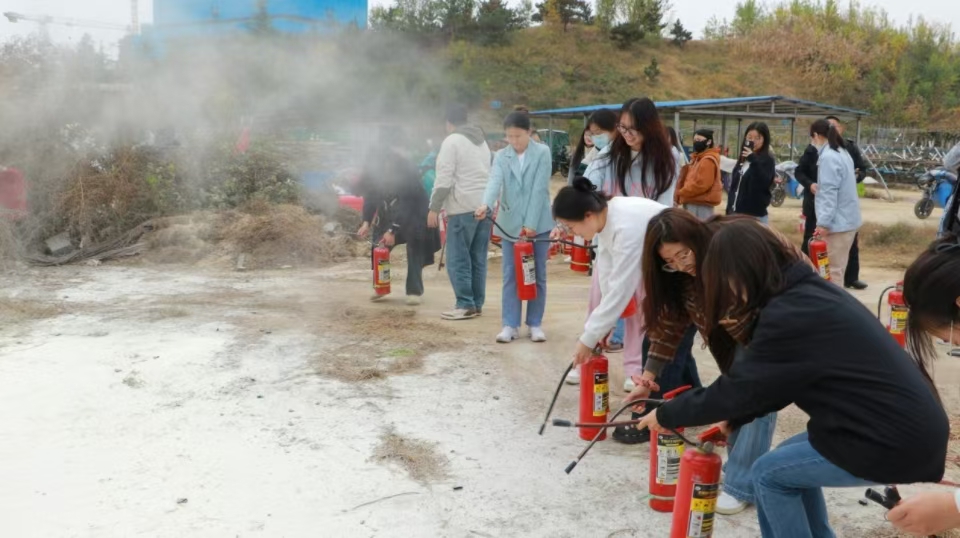 在模拟的火灾现场中,程致远详细讲解了灭火器的使用方法,并进行灭火器材展示。现场的火盆让同学们亲身体验灭火器的操作,增强实践能力。通过本次消防演练活动,同学们不仅学到了宝贵的消防安全知识,学会了灭火器的使用方法,提升了同学们在紧急情况下的应对能力,使他们在面对突发情况时能够更加从容应对。