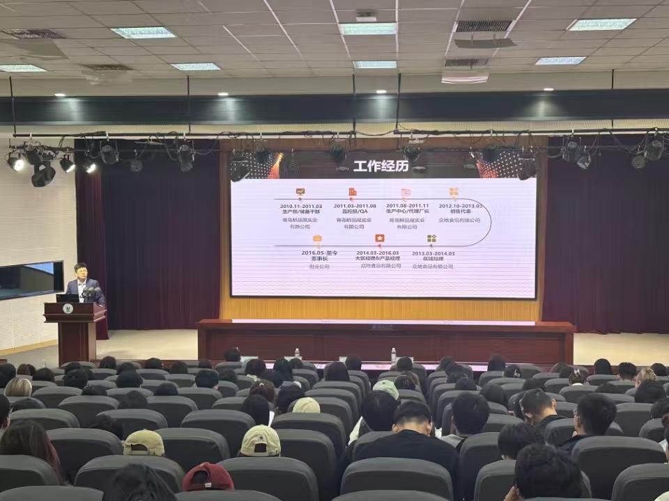 2011届校友、青岛众创味来食品科技有限公司董事长钱龙分享了自己的学习经历、创业之路和人生感悟,并通过详实的案例讲解了同学们在应聘过程中需要注意的事项,围绕简历投递、职业规划等方面向同学们做了详细说明。