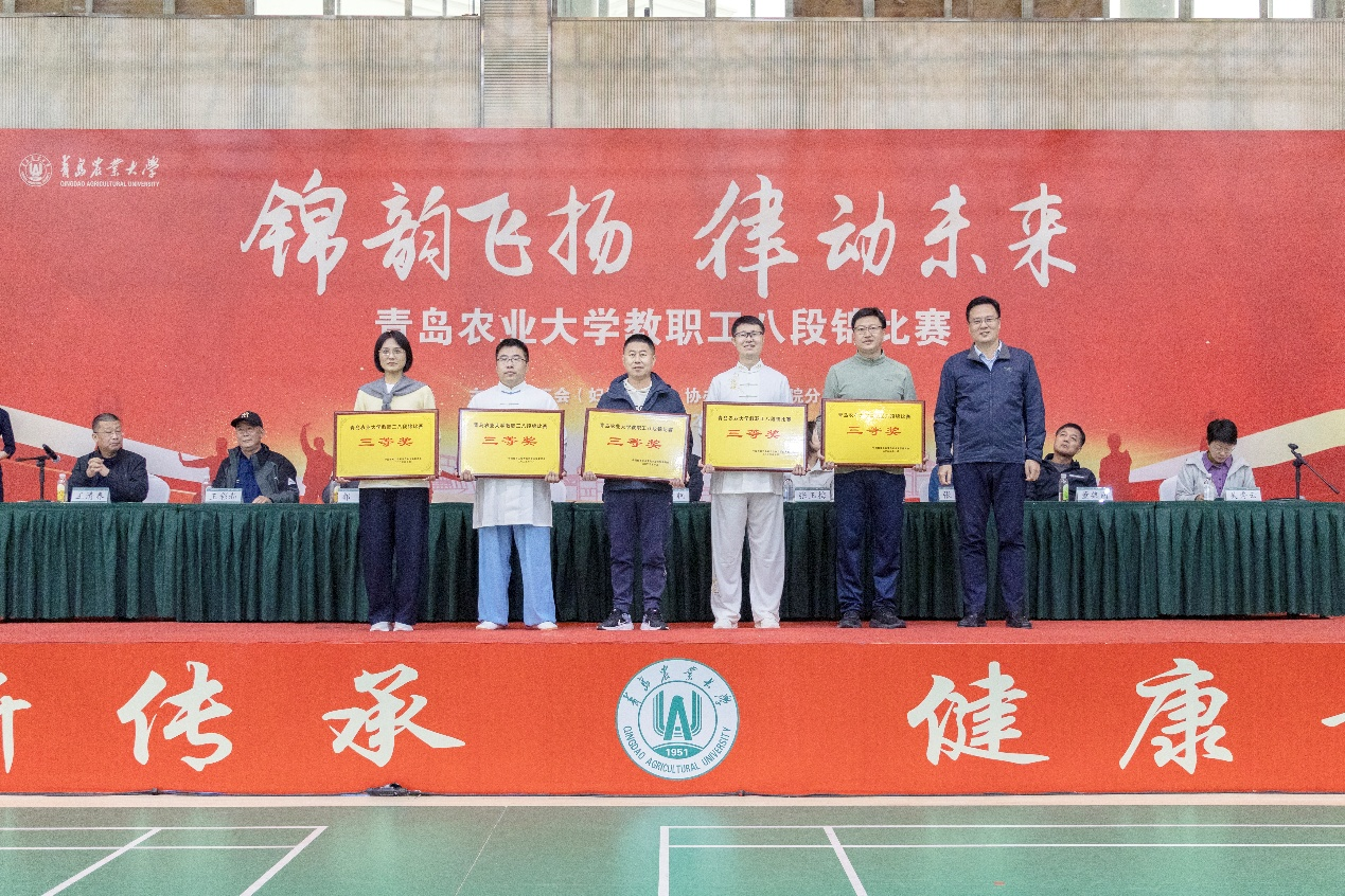 10月25日下午,学校2025年教职工八段锦比赛在文体馆顺利举行。食品学院教职工代表队凭借规范流畅的动作和饱满的精神状态,在比赛中脱颖而出,荣获三等奖。