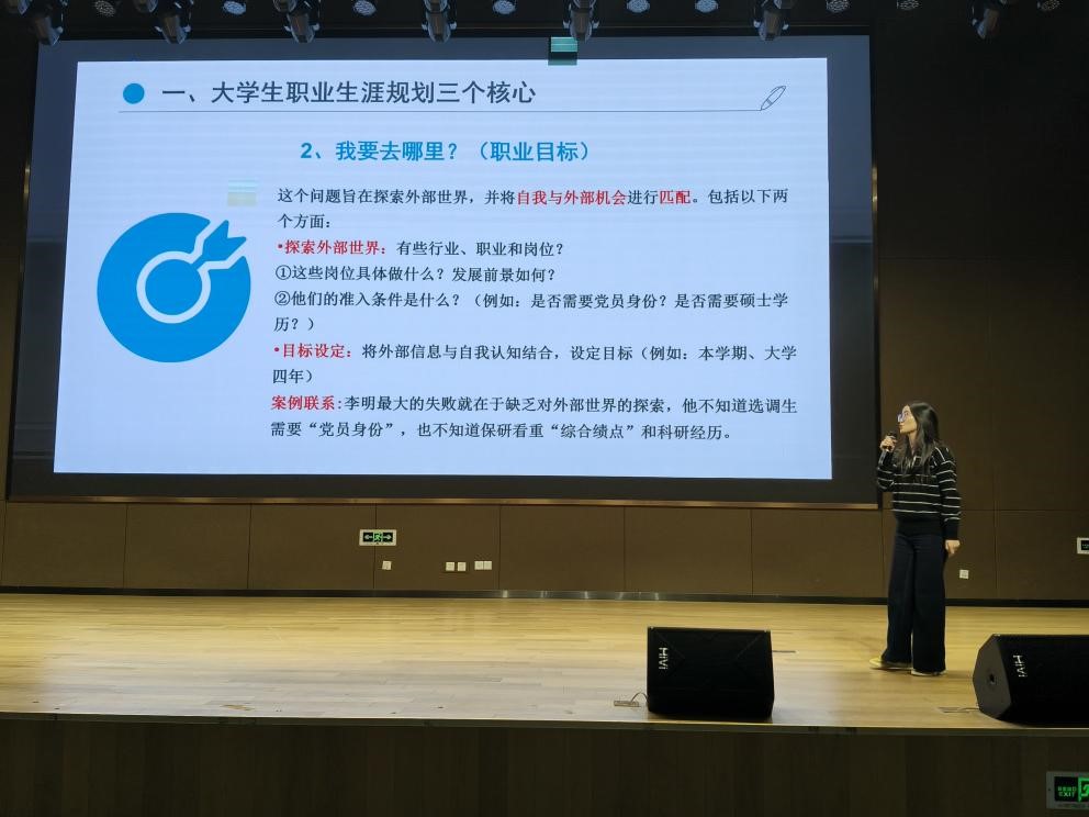 针对2025级新生,张文静针对考生以“大学如何高效学习”为切入点,通过“你理想的就业方向是什么”“‘合适的院校选择’包含哪些要素”等互动提问,引导新生主动思考未来规划,让大家在交流中清晰“为何考、为谁考”的核心问题。张文静还梳理了四六级完整考试流程,明确关键时间节点,强化学生时间管理意识。