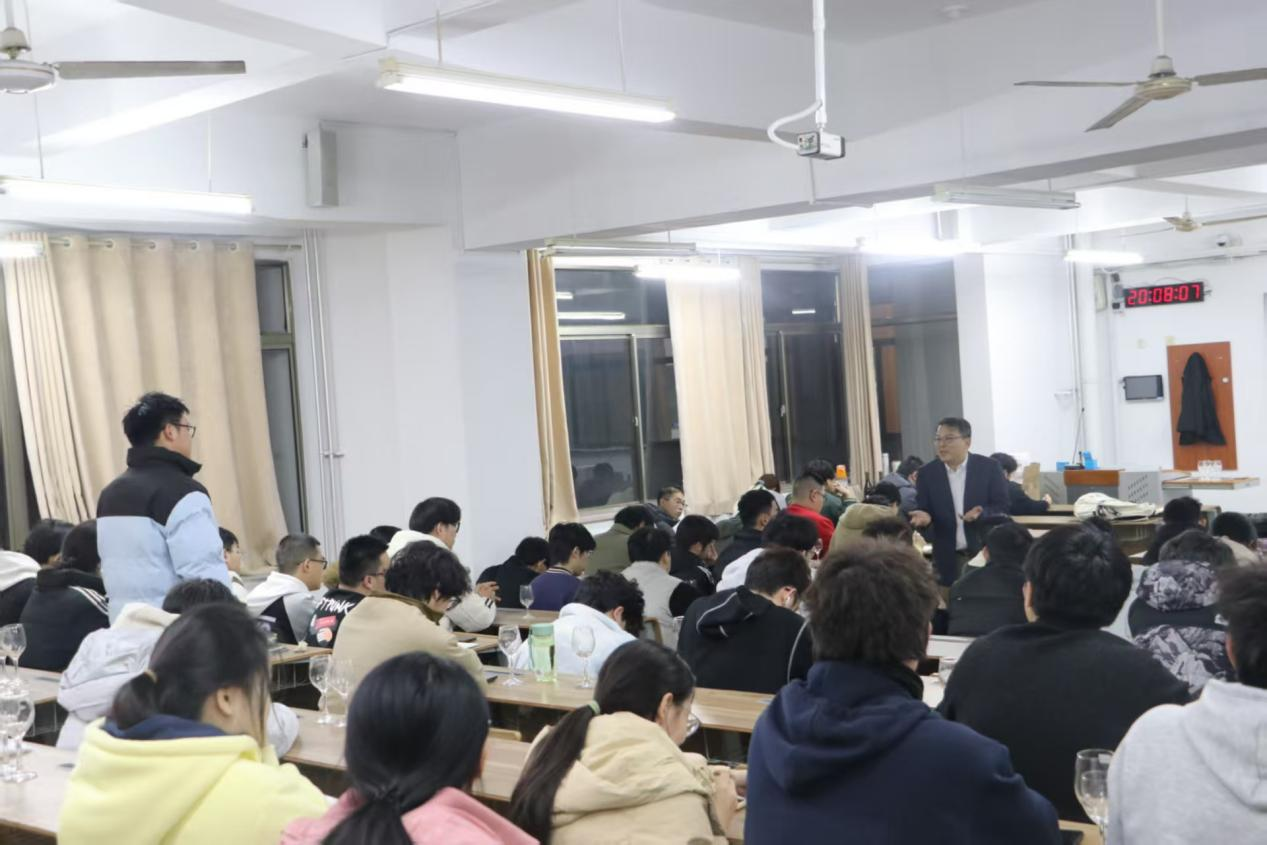 讲座中,黄卫东教授系统介绍了葡萄酒的分类分级体系和世界产区文化特色,展现了葡萄酒产业的深厚底蕴。同时,针对我国葡萄酒产业发展,黄卫东教授谈到,龙头企业需强化规模化、标准化发展,优质产区应聚焦风土特色,培育个性化酒庄集群与小产区品牌。他强调,中餐与葡萄酒的搭配堪称世界上最复杂且神奇多样的餐酒搭配方式。在此基础上,他还进一步抛出了“葡萄酒和中餐是否可以深度融合”的问题,激发了学生们广泛讨论。讲座最后,黄卫东教授邀请现场师生共同品鉴多款风味的葡萄酒,以感官体验加深对葡萄酒风味与饮食文化融合的理解力。