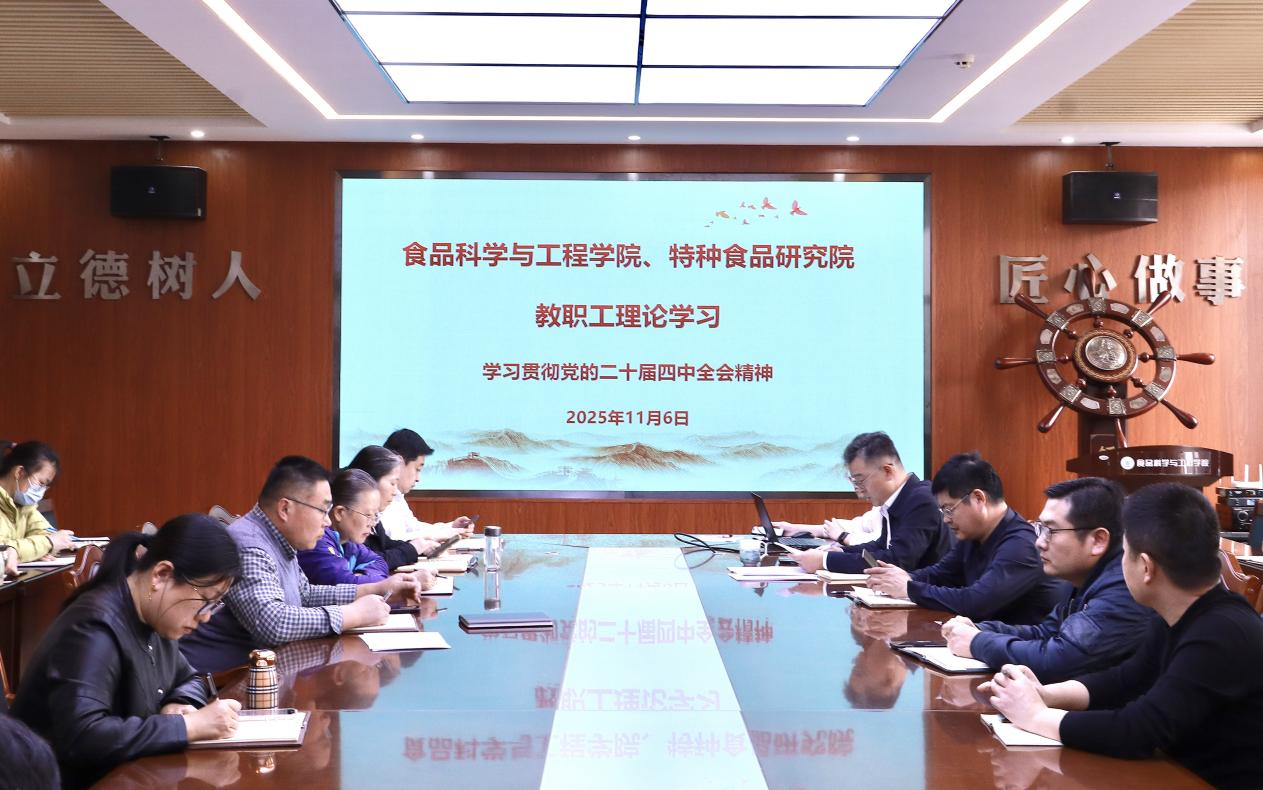 会议强调,要深入学习贯彻党的二十届四中全会精神,深刻领会全会关于“十五五”时期发展形势的科学判断和战略谋划,自觉将学院发展与服务国家战略紧密对接,以党的二十届四中全会精神为强大动力,在严守纪律底线的同时,勇于担当、积极作为,聚焦食品科技前沿,加强关键核心技术攻关,促进创新链与产业链深度融合,为推进学院高质量发展、服务国家食品产业现代化和保障国家粮食安全做出重要贡献。
