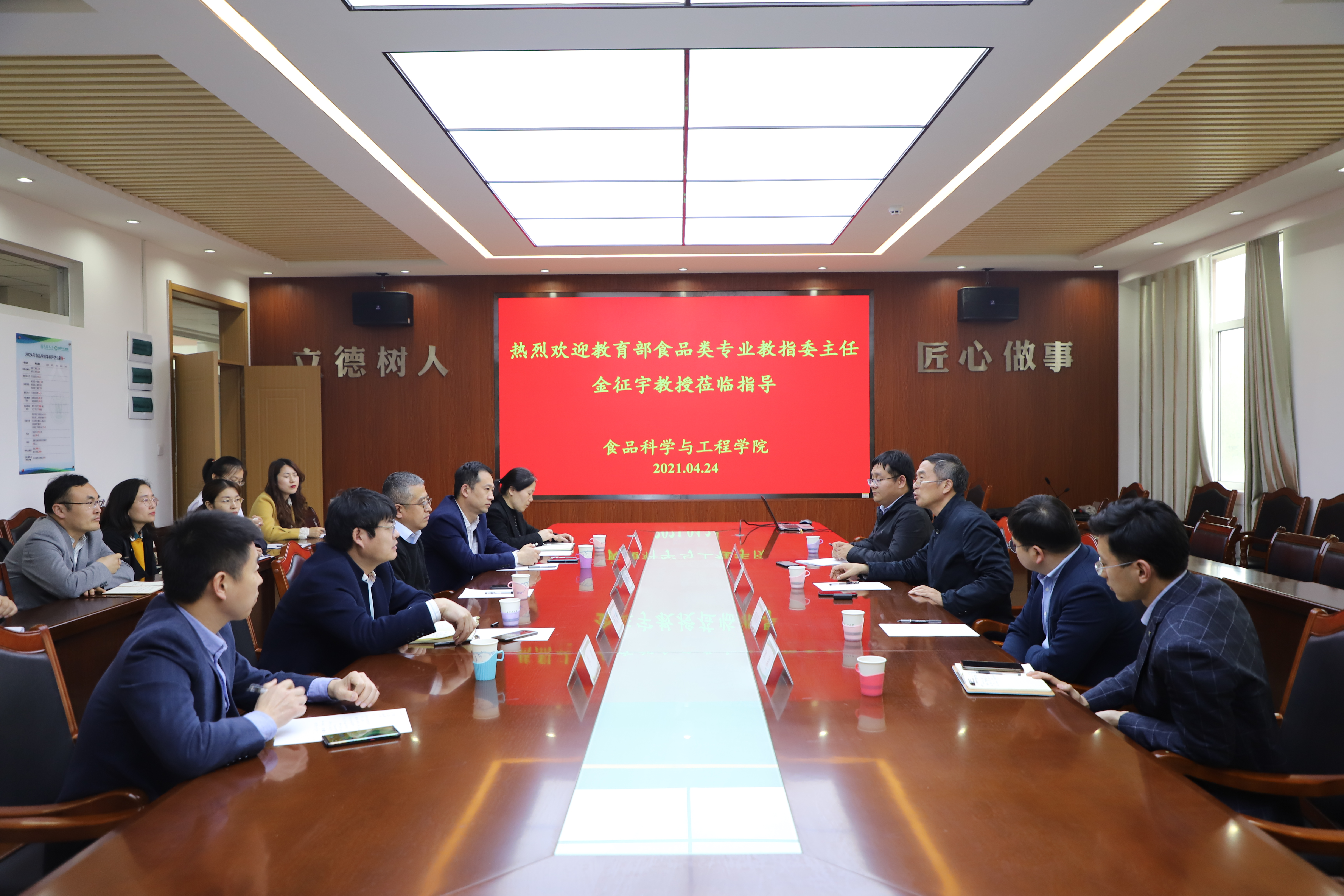 4月24日,教育部高等学校食品科学与工程类专业教学指导委员会主任、工程教育专业认证专家委员会主任委员、江南大学原副校长金征宇教授一行来访70net永乐高,就国家一流本科专业建设和工程认证工作进行指导并开展专业建设交流会。校党委书记李宝笃、副校长赵金山接待了来访客人。