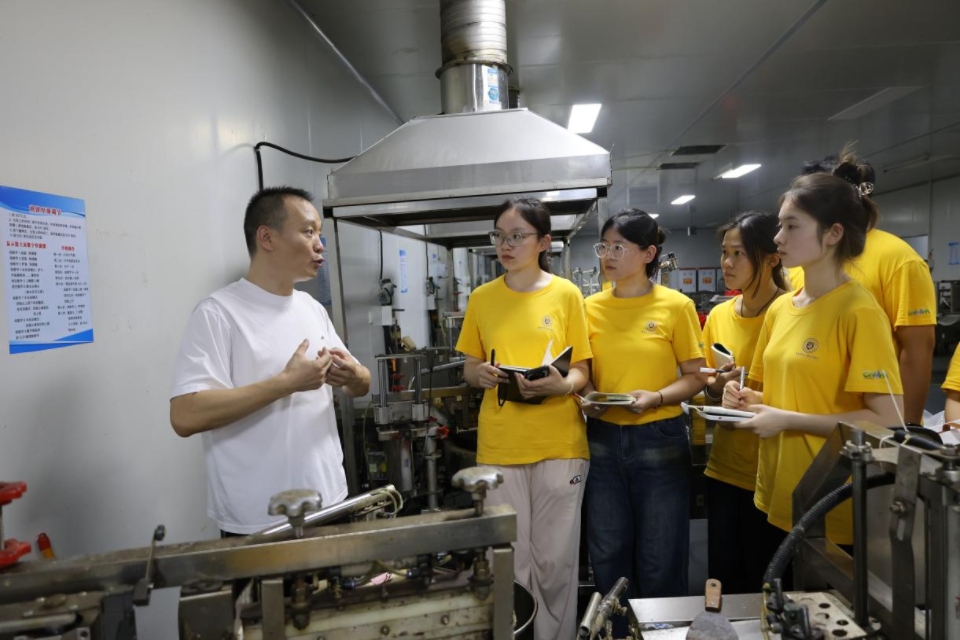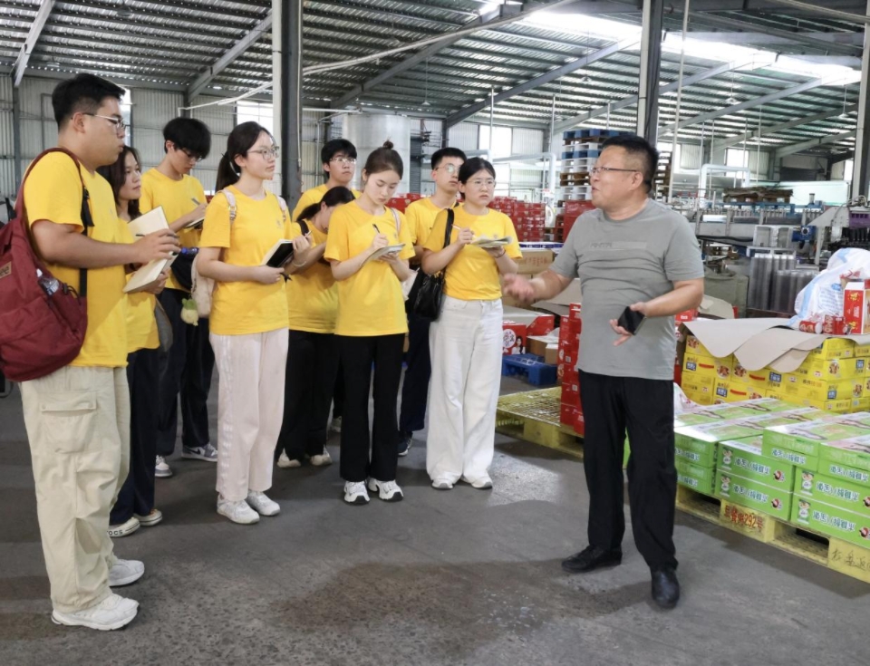 以实践发问,以探索求知。实践团成员在省派驻村第一书记王利平和李永青的带领下,详细了解“王小饼”煎饼品牌的发展历程,该品牌与学院师生团队展开深度合作,在坚守煎饼原有特色的基础上,成功攻克产品不好吸收、能量偏高的共性难题,为传统煎饼升级开辟新路径。实践团成员就企业当下的研发战略与创意、传统煎饼产业升级面临的问题、未来企业发展升级的战略部署三个方面与各企业负责人交流探讨,提出了多项具有创新性和可行性的想法。成员们感悟颇深,真切意识到传统煎饼产业想要打出名气,要先统一品牌,统一品牌的前提是统一标准,要靠科技提升效益,用标准化、创新性提高市场竞争力,这样能加快农民的增收步伐,推动乡村振兴。