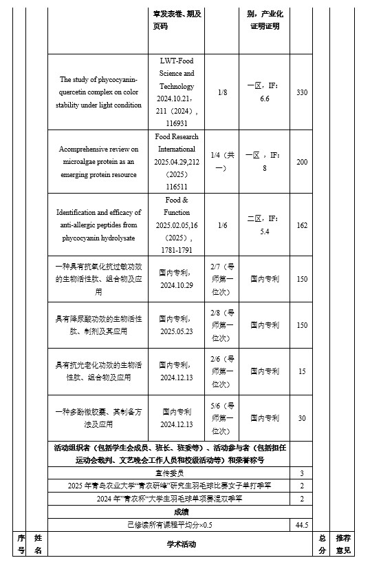 公示期间如有异议,请向食品学院学生工作办公室(食品楼304)反映。电话:0532-58957772