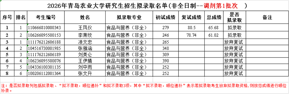 2026年研究生复试拟录取名单
