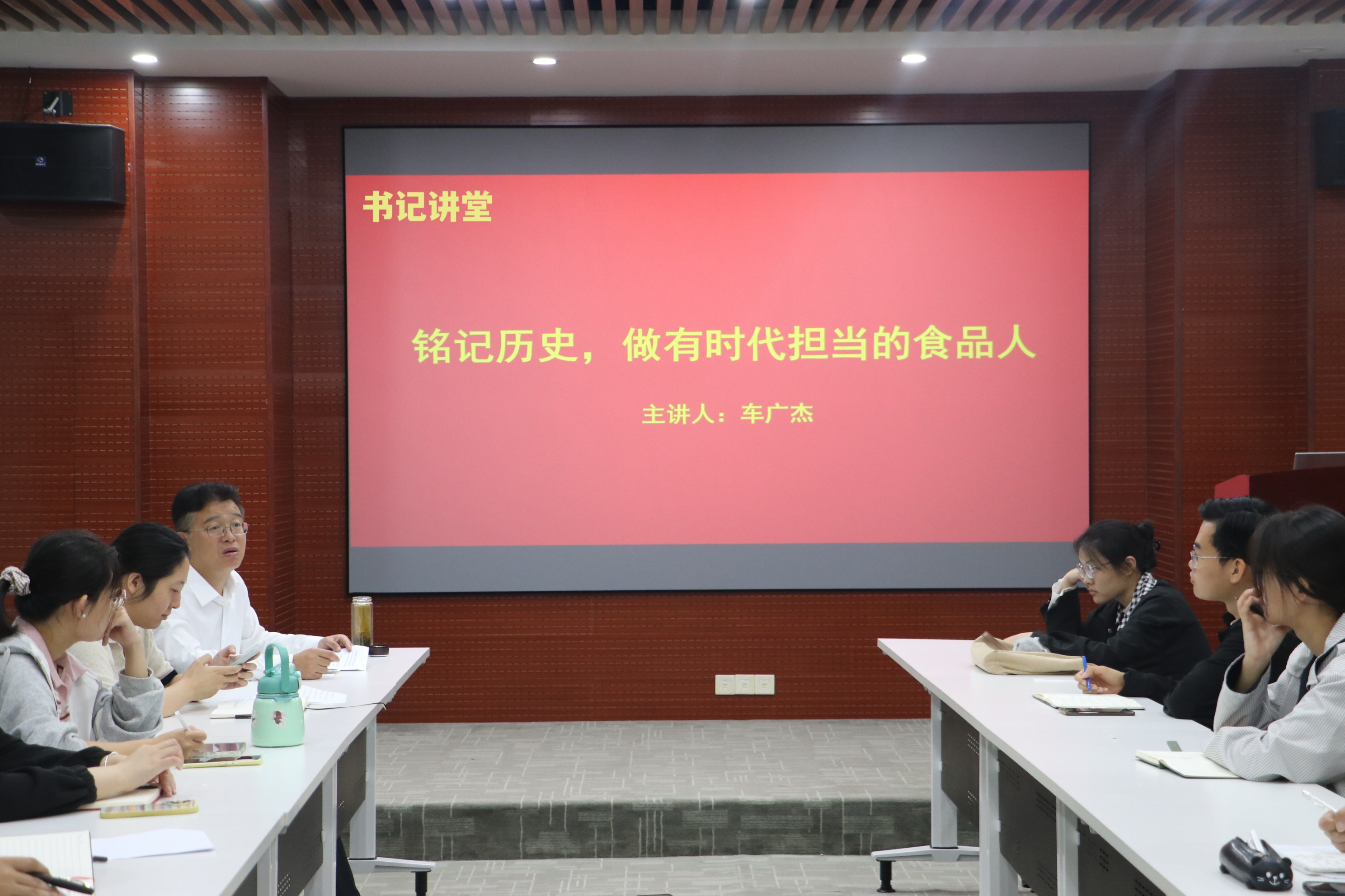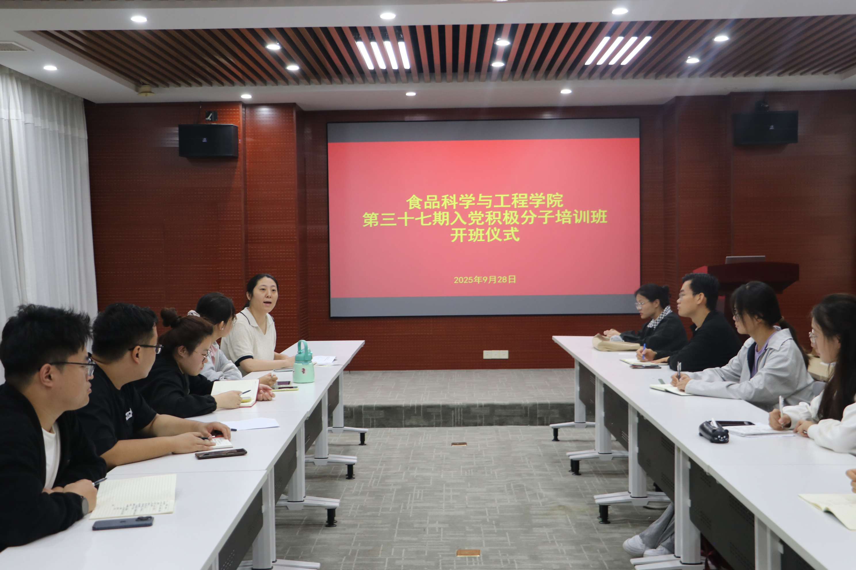 仪式在庄严的国歌声中拉开序幕。车广杰以《铭记历史,做有时代担当的食品人》为题,为全体学员讲授专题党课,并向学生代表赠送《入党积极分子、党员成长档案》。他以纪念中国人民抗日战争暨世界反法西斯战争胜利80周年“九三阅兵”为切入点,深刻阐释了阅兵所展现的民族精神和时代力量,回顾了中国共产党百年奋斗历程及其宝贵经验,引导大家深刻领悟习近平总书记对青年学子的殷切期望。结合食品学院的专业特色,车广杰对全体学员提出五点希望:坚定理想信念、厚植家国情怀、练就过硬本领、勇于创新创造、弘扬奋斗精神,鼓励大家为保障国家粮食安全、推动食品产业高质量发展、实现中华民族伟大复兴的中国梦贡献青春力量。